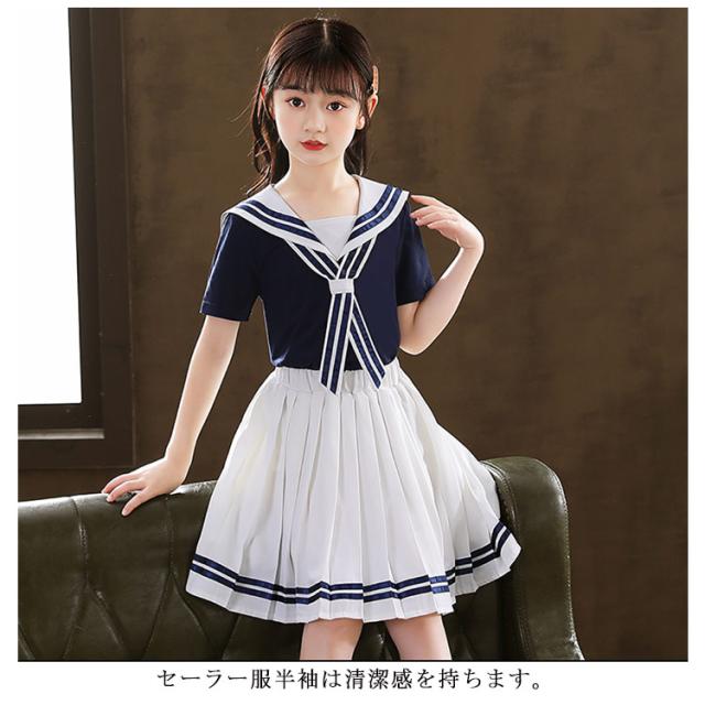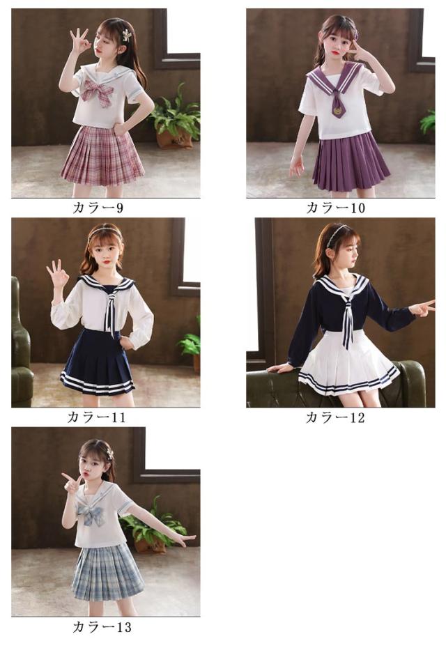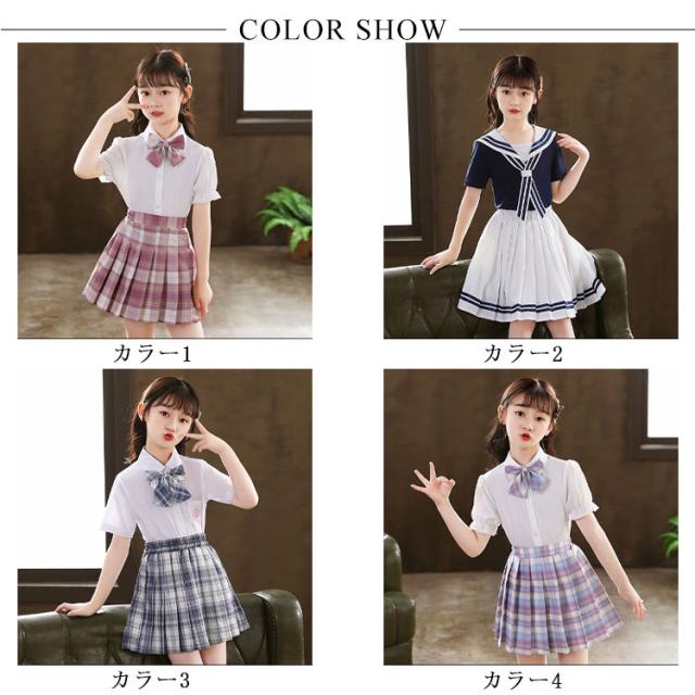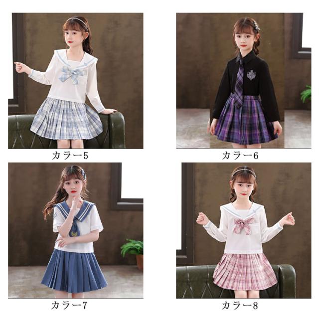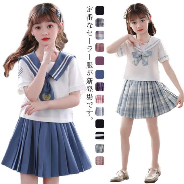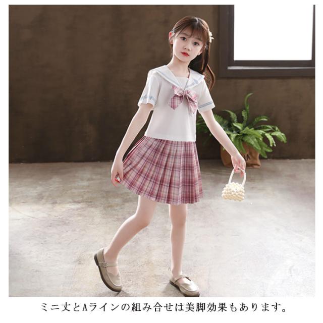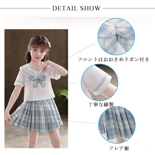 子供服 セーラー服 半袖 プリーツスカート チェック柄 女子制服 学生服 女子高校生 高校生 学生 制服 コスチューム 可愛い コスプレ 学園祭 文化祭 新作