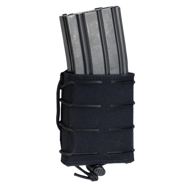 内部の滑り止め生地と外部のショックコードによって、フラップが無くてもマガジンが抜けることのない仕様。