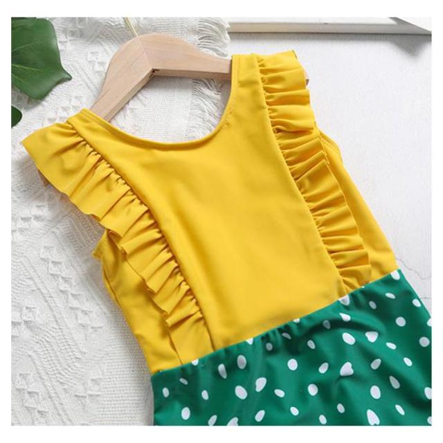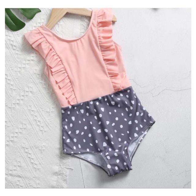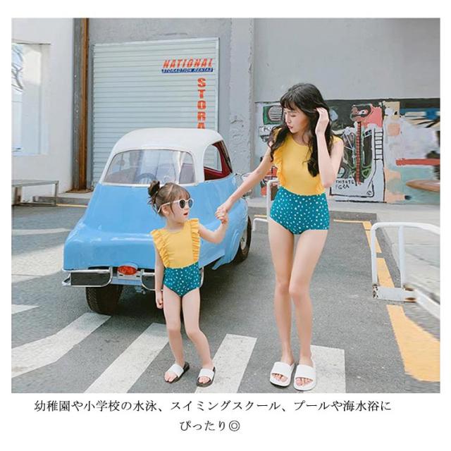 送料無料親子ペア 水着 キッズ 女の子 ワンピース 親子ペアルック ビキニ—水着 体型カバー オールインワン スイムウェア つなぎ ノースリーブ フリル かわいい ガールズ ジュニア 子ども ドット柄