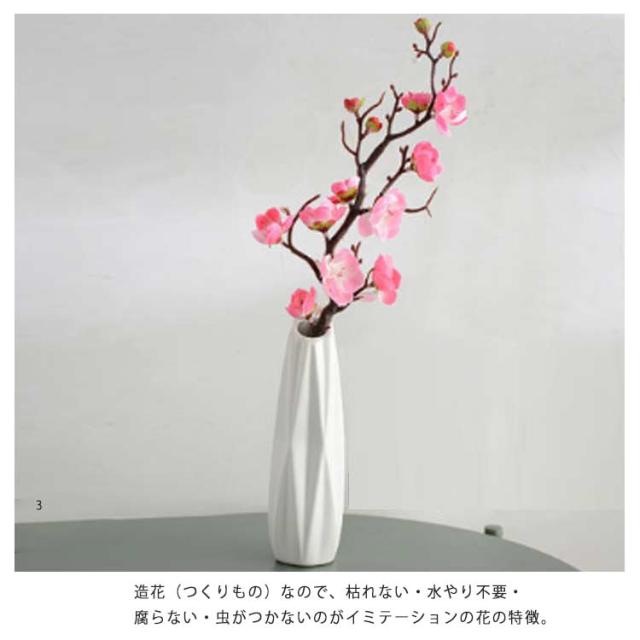 | 綿密な観察と技術から生み出されるこの造花は本物のように美しく、ワンランク上の造花です。 造花(つくりもの)なので、枯れない・水やり不要・腐らない・虫がつかないのがイミテーションの花の特徴。 特定の季節にしか見られない梅の花が、一年中楽しめるようになりました。 お部屋に飾ればとっても華やかになりますよ! ご注意: 直射日光の当たる場所や屋外で使用すると、色落ちや変色する恐れがありますので、十分ご注意ください。 イミテーションの花は手作業で繋ぎ合わされているので、ちょっとした落花落葉は避けられないので、予めご了承ください。 最初は少し匂いがするかもしれないので、1日風通しの良い場所に置くのがおすすめです。 | |