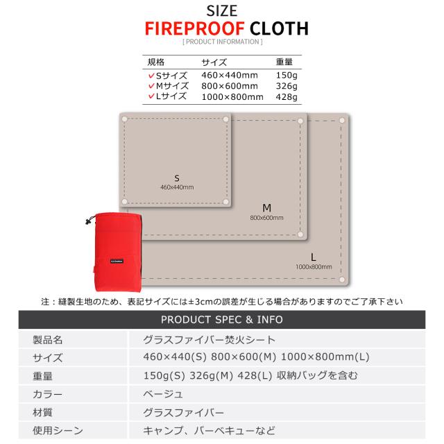 ■品名:グラスファイバー焚火シート(収納ポーチ付き)