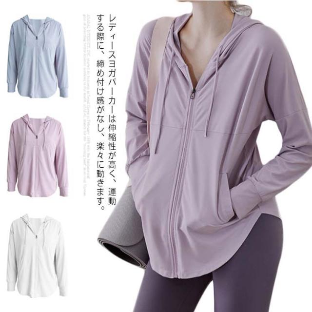 パーカー ヨガウェア ヨガ服 パーカー トレーニングパーカー レディース スポーツジャケット ランニング ジョギング ジム フィットネス スウェットウェア 吸汗速乾 長袖 部屋着 前開き ファスナー UVカット 接触冷感 送料無料