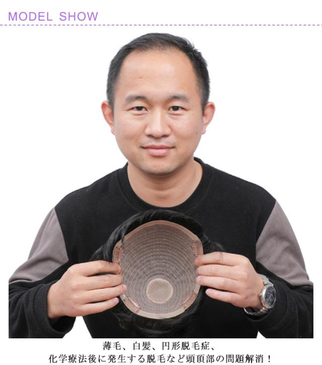 | 薄毛、白髪、円形脱毛症、化学療法後に発生する脱毛など頭頂部の問題解消! 厳選された人毛を使用しているので、まるで自分の髪のように自然♪ 初心者さんでも簡単にイメチェン出来る、急なお出かけにも便利です。 | |