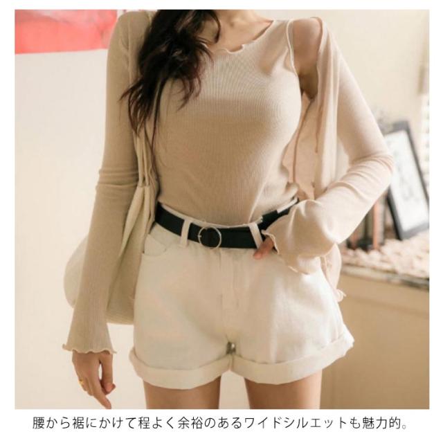 | カジュアルスタイルにぴったりなデニムショートパンツ。 腰から裾にかけて程よく余裕のあるワイドシルエットも魅力的。 ハイウエストで腰の位置を高く見えて脚長効果も抜群。 ビッグシルエットのロンTなどルーズに合わせたカジュアルスタイルに♪ | |
