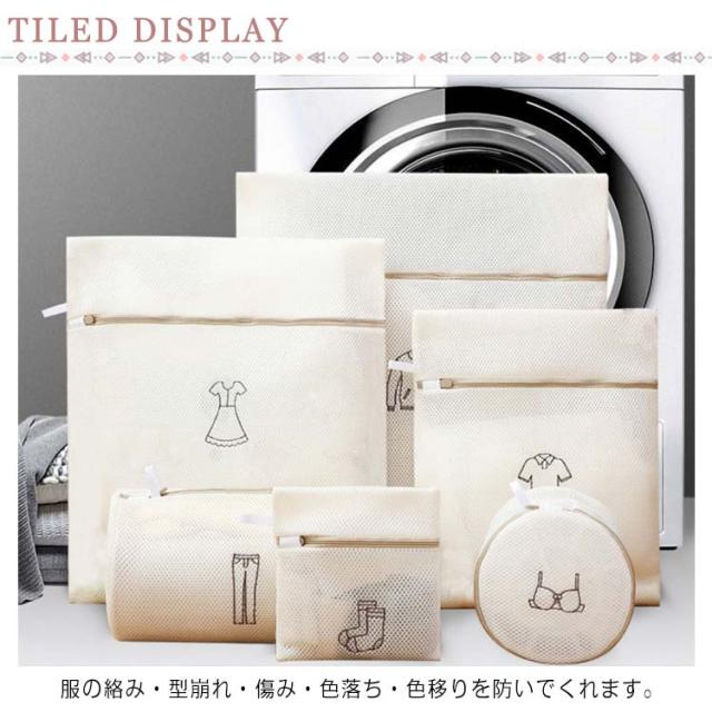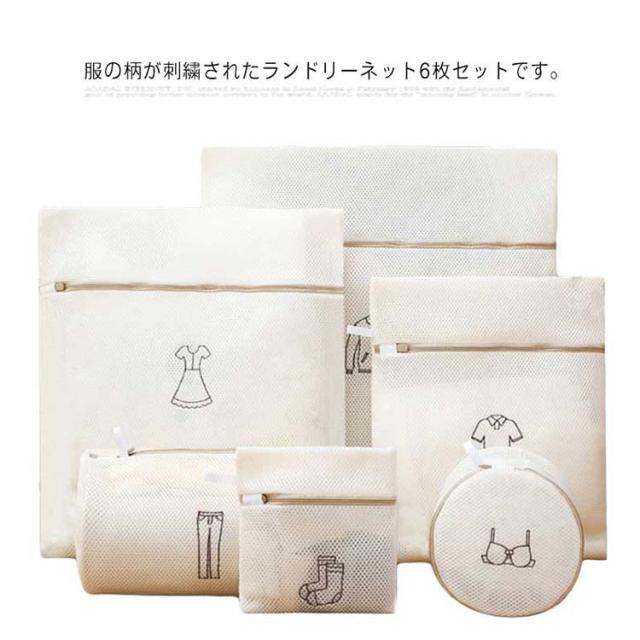 洗濯ネット 6枚セット ランドリーネット 6サイズ 刺繍 メッシュ トラベルポーチ 形崩れ防止 セーター パンツ ブラジャー 下着用 傷み防止 絡み防ぎ シワ防止 色あせ防止 洗濯用品 家庭用品 送料無料