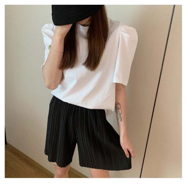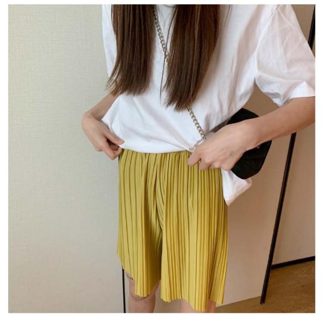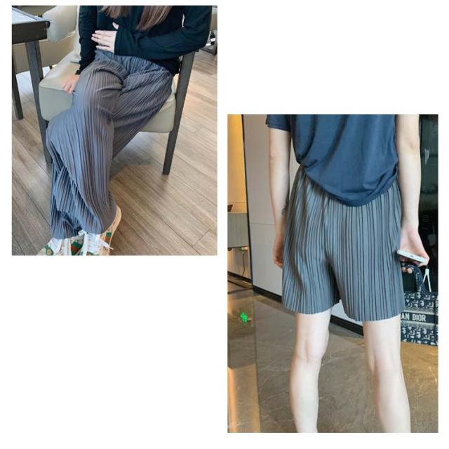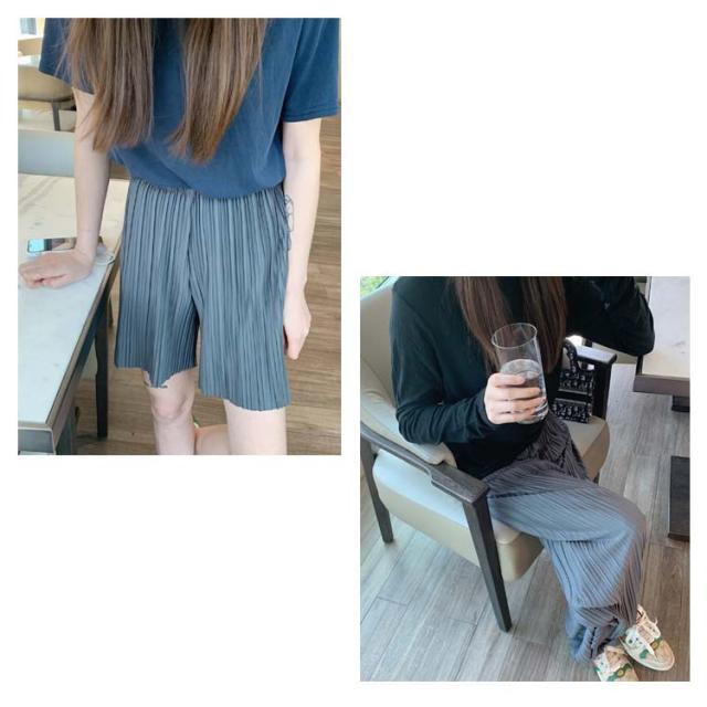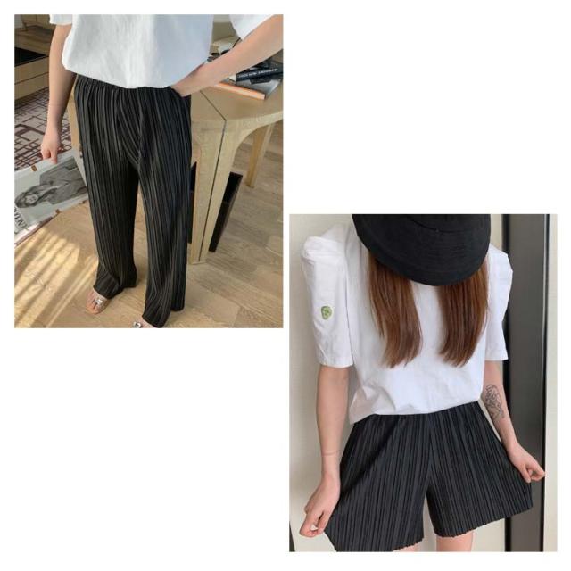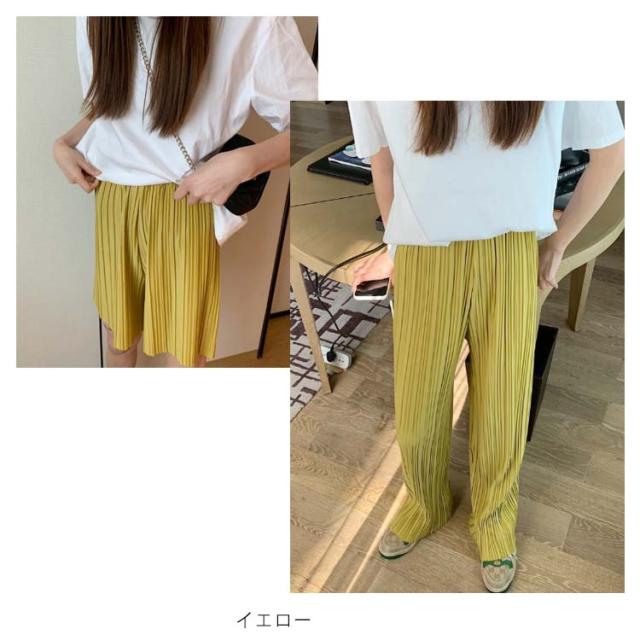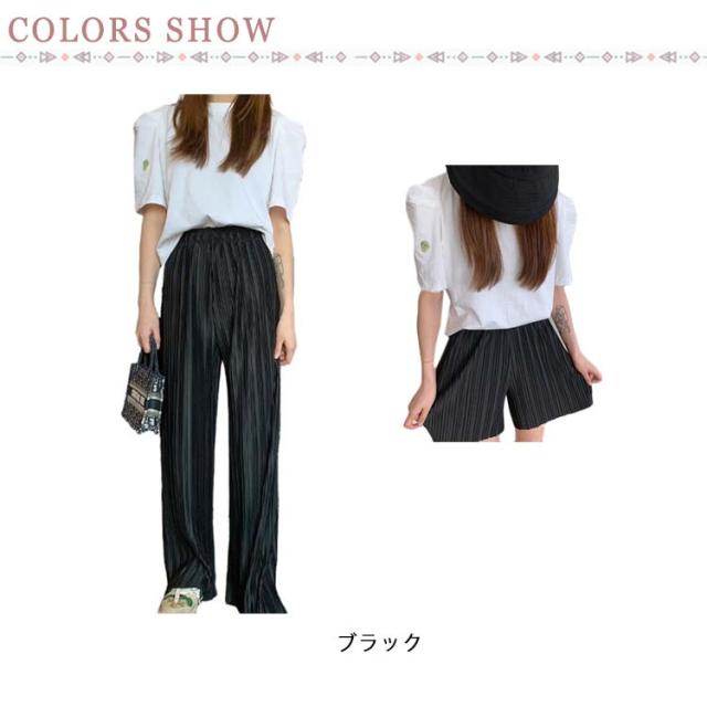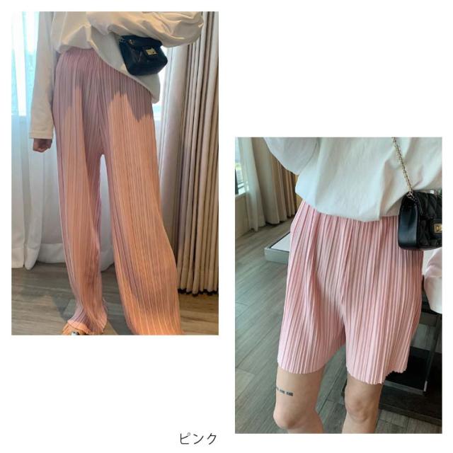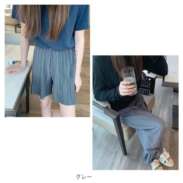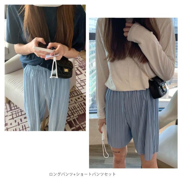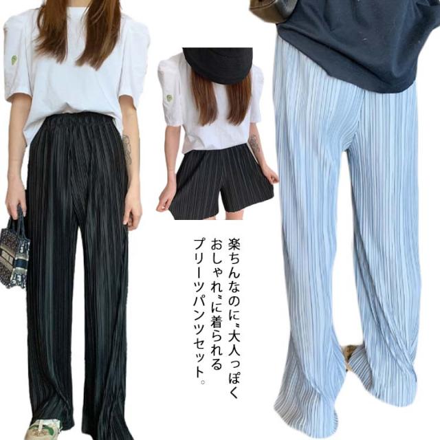 ロングパンツ+ショートパンツセット 2点セット 送料無料 レディース ワイドパンツ プリーツパンツ 春 夏 秋 バギーパンツ ストレート イージーパンツ リラックス ウエストゴム ロング 体型カバー