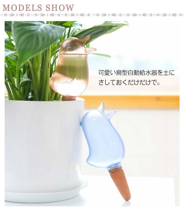 | 植木鉢に差し込むだけで留守中の水やりも心配ない! 可愛い鳥型自動給水器を土にさしておくだけだけで。自動的に植物に適量な水分を補給するから、毎日の水やりが楽チン! お忙しい時、旅行や出張の場合、大切な草木が枯れることなく安心◎ 透明の小鳥なので、残量が一目でわかるのも嬉しいポイント。 可愛いデザインなので、植木鉢のアクセサリーとしても◎挿しておくだけでデイリーの水やりもラクラク。 | |