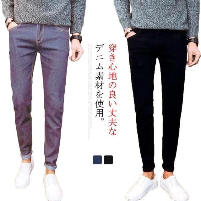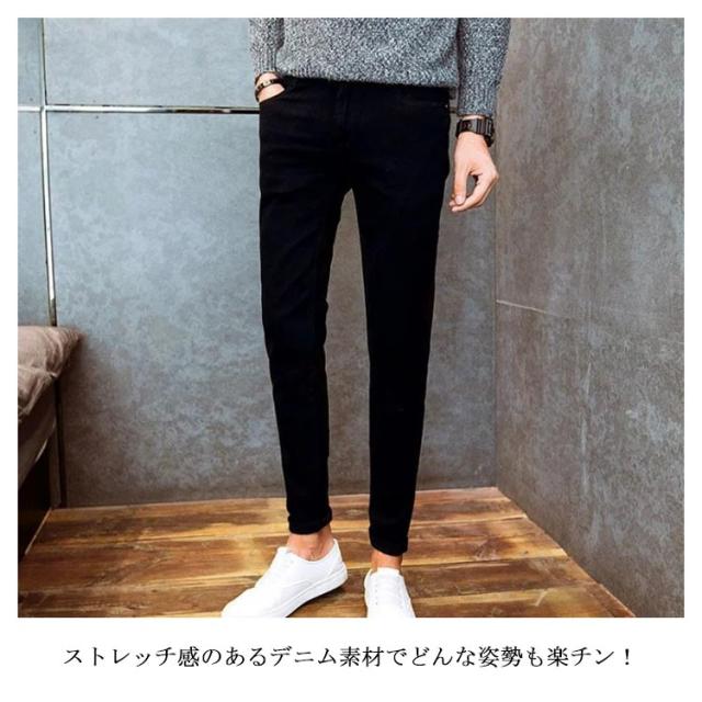 デニムパンツ メンズ ジーンズ スキニー デニム ジョガー ストレッチ 綿 スリム 細身 フィット アンクルパンツ クロップドパンツ ボトムス ロングパンツ 9分丈 ジーパン クラッシュ 無地 きれいめ 黒 おしゃれ 男女兼用 春夏秋