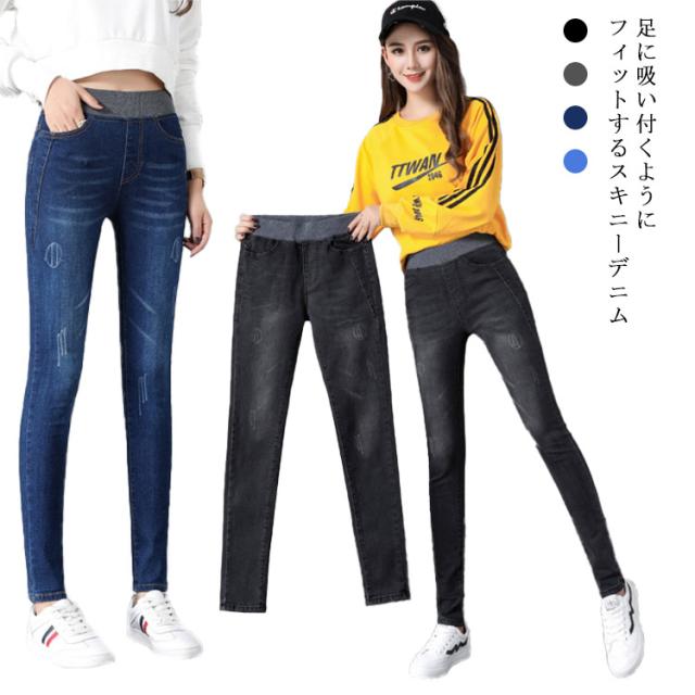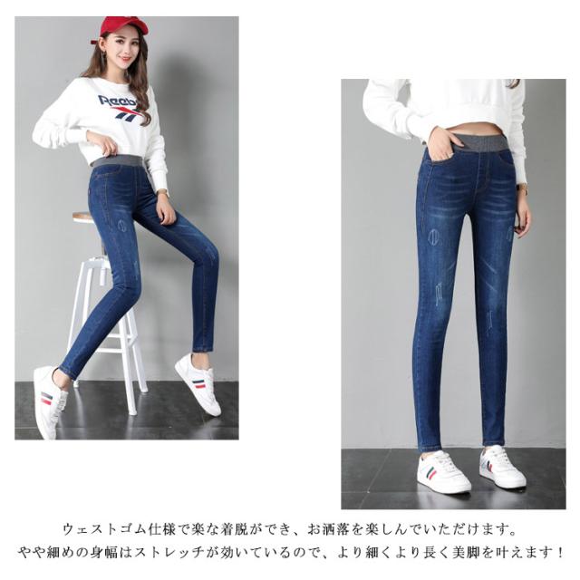 【送料無料】デニム スキニーパンツ レディース レギンスパンツ スキニー デニムパンツ ボトムス ジーンズ スキニージーンズ 細身デニム ウェストゴム スキニー アンクル丈 ロング丈