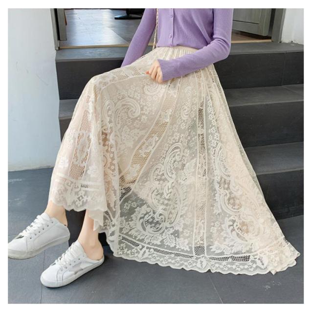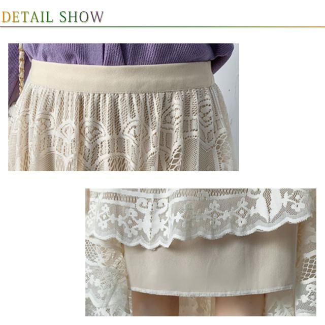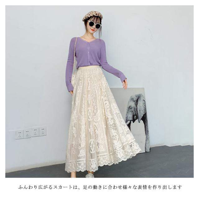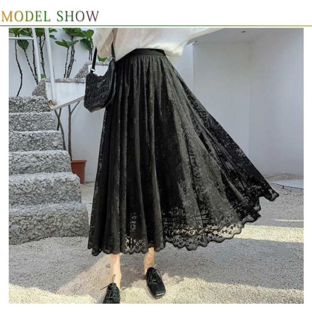 【送料無料】総レーススカート マキシ丈 ギャザースカート フレアスカート Aラインスカート レース スカラップ 花柄レース チュール Aライン ウエストゴム ボトムス 大きいサイズ 体型カバー