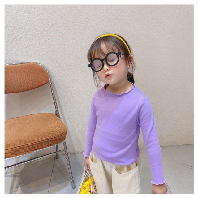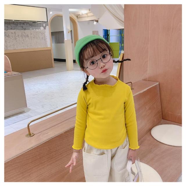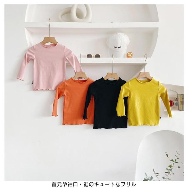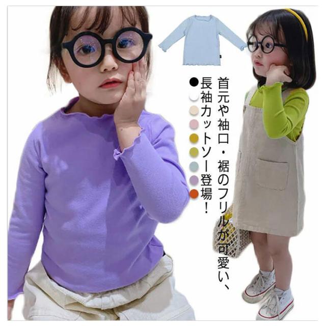 送料無料 子供服 カットソー フリル 長袖tシャツ 可愛い 女の子 キッズ トップス 秋 黒 白 ピンク ベージュ カジュアル 子供服 こども服 お誕生日会 プルオーバー クルーネック リブ 長袖 かわいい 通学 制服コーデ お散歩 お出かけ