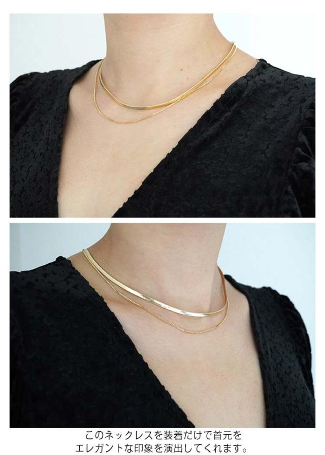 ネックレス チェーン レディース 2点セット チタン ステンレス製 金属アレルギー ゴールド オメガネックレス 平タイプ おしゃれ シンプル 華奢 上品 大人 女性 ギフト プレゼント 送料無料