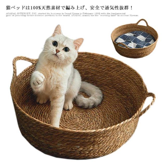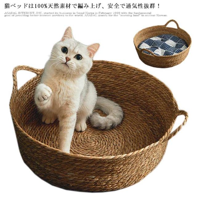 ペットマット 夏用 ラタン 猫ベッド 犬ベッド 小型犬 ねこ 涼しい 通気性 ガマ編み 蒲編み物 クッション付き ペットマット 犬猫兼用寝床 小動物 藤編み 猫爪とぎ 可愛い シンプル インテリア 天然素材 安全 無臭 寝具 ペット用品