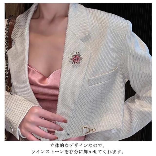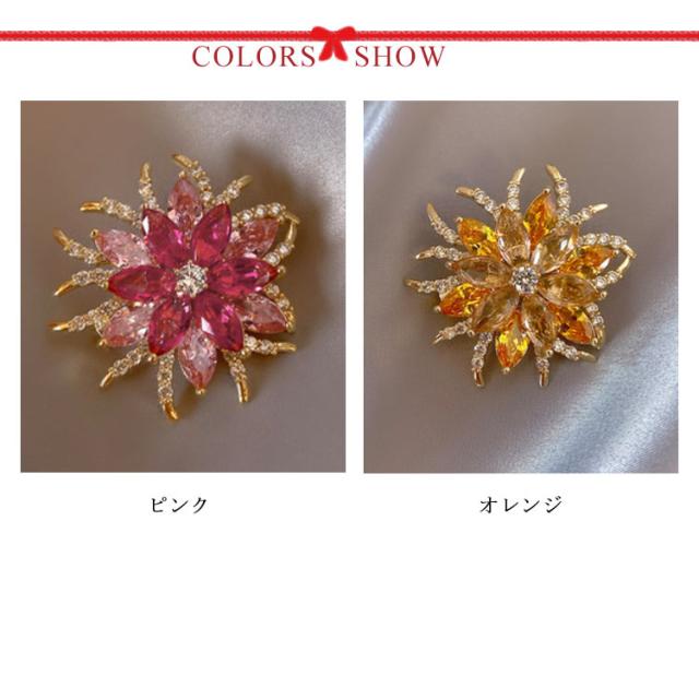 | マフラーやベレー帽、ジャケットやコートのアクセントにするとおしゃれ感アップ。 立体的なデザインなので、ラインストーンを存分に輝かせてくれます。 もちろんシニア女性の方にも、お洒落に飾っていただけます。 年齢を選ばないオシャレな花形ブローチです。 女性の魅力を引き出す上質な輝きと上品さをこのコサージュに集めています。 | |