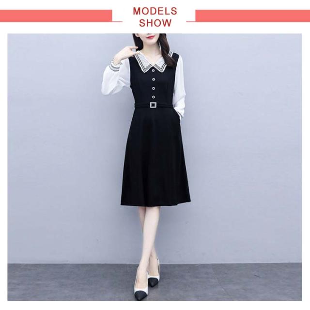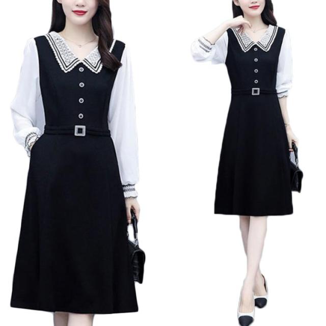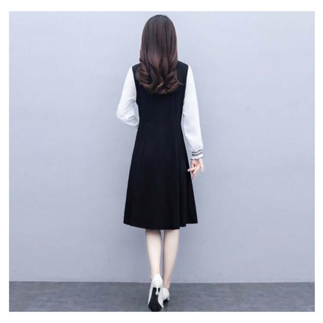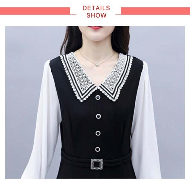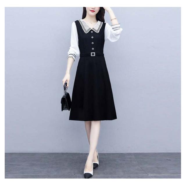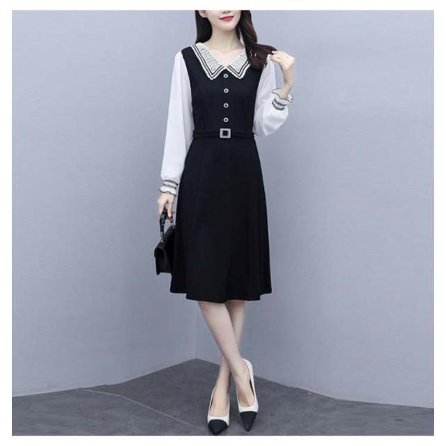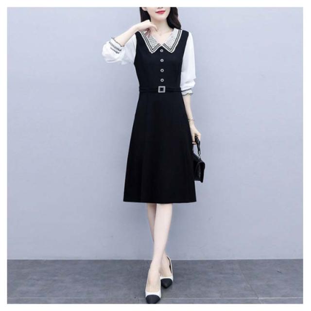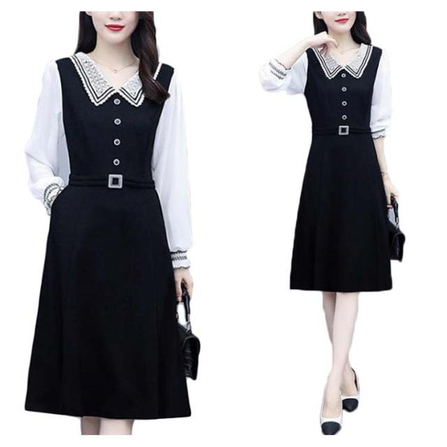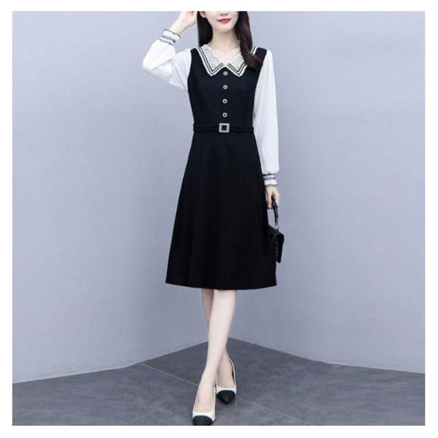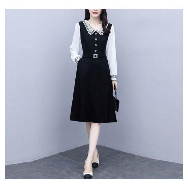ロングワンピース レディース 秋 大きサイズ シフォンワンピース 長袖 ミディアム丈 切り替え 折襟 シフォン Aライン 着痩せ 無地 シンプル カジュアル オシャレ ロングワンピ フォーマル ナチュラル オシャレワンピース