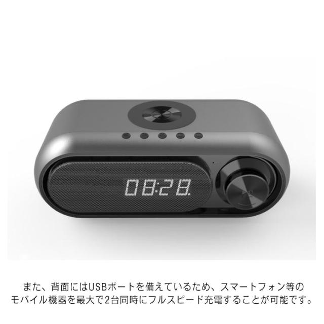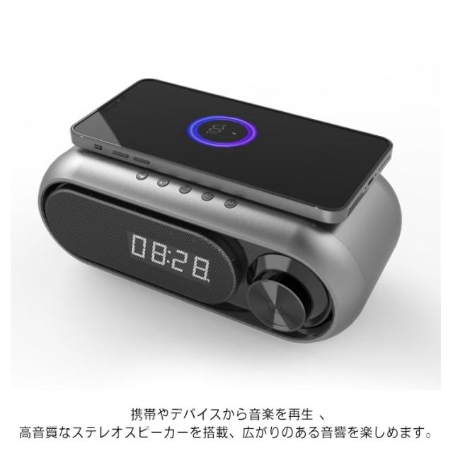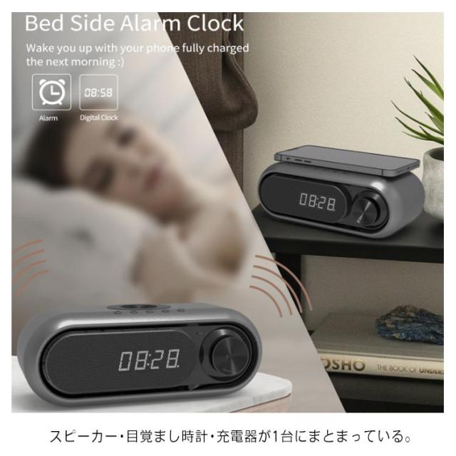 Qi 対応 Bluetooth スピーカー ワイヤレス充電器 高音質 ラジオ 目覚まし時計 5/10W出力 iPhone Android対応 1台4役