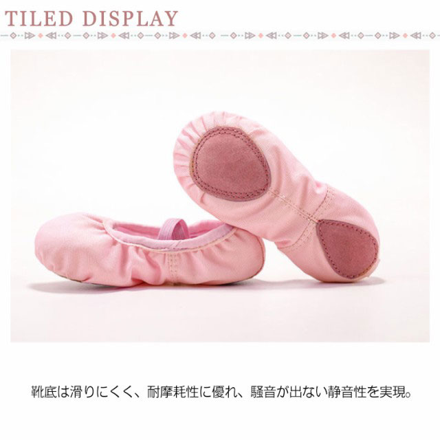 | 適度な柔らかさを持つ、通気性のある軽量バレエシューズ。 ゴム紐が入っているので、足をぴったりフィットし、足になじみ動きやすい。 お子様の足に合わせて調節でき、着脱も容易です。 靴底は滑りにくく、耐摩耗性に優れ、騒音が出ない静音性を実現。 インソールには柔らかいコットンを使用し、通気性と吸汗性に優れています。 初心者、レッスン、練習用に最適です。 | |