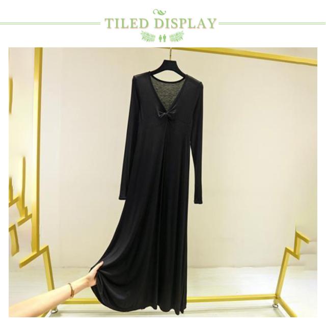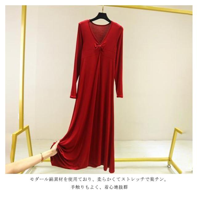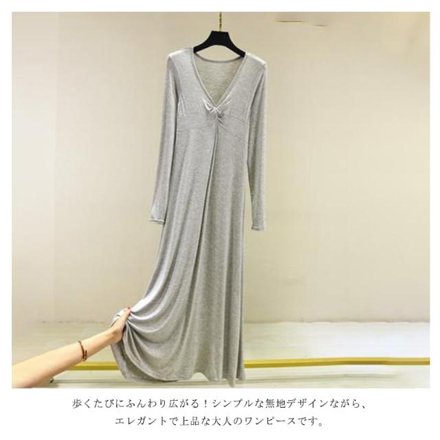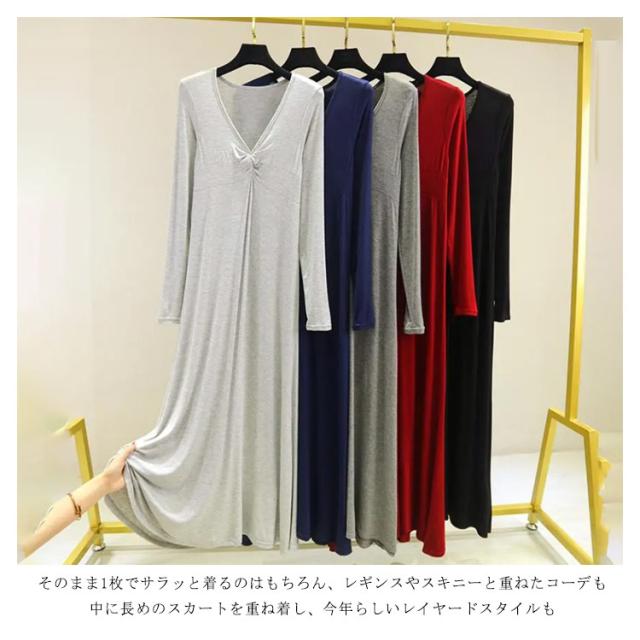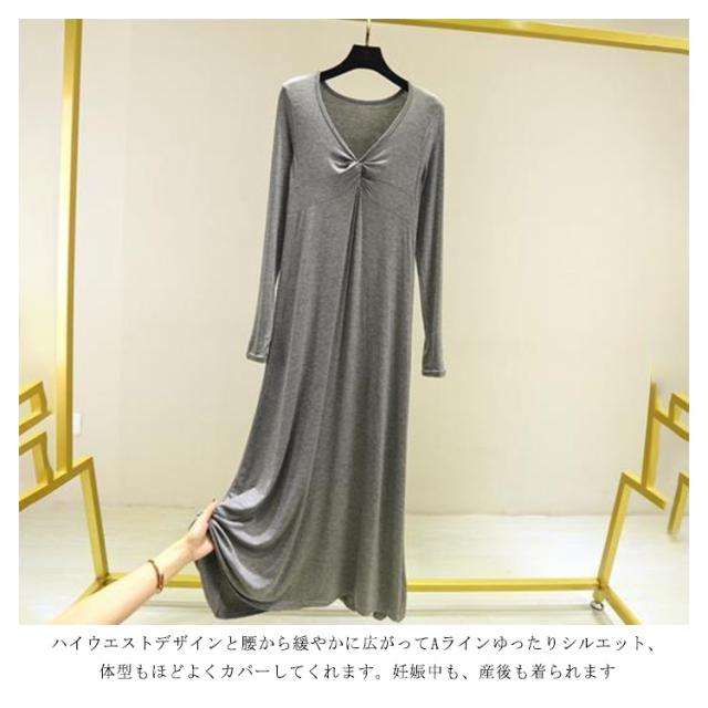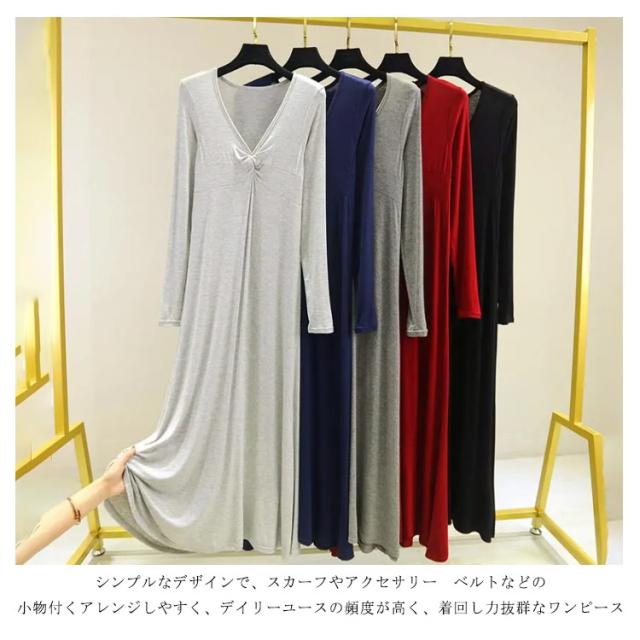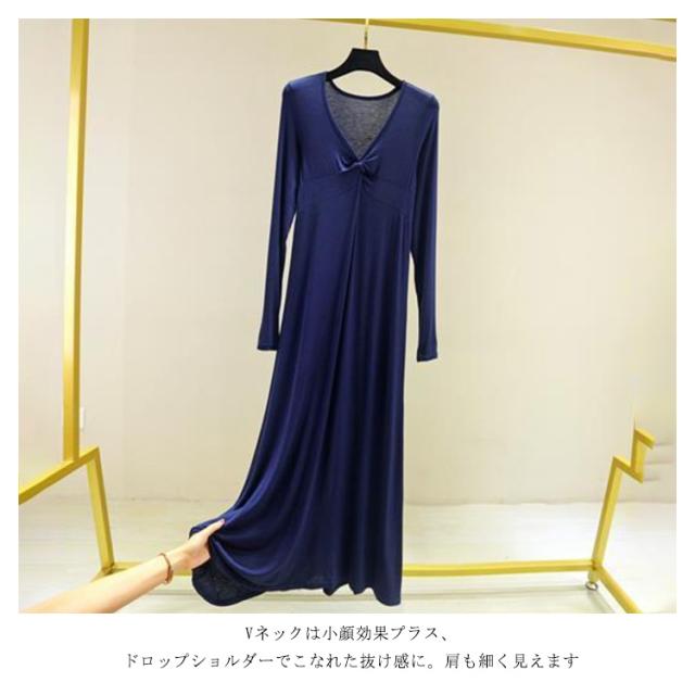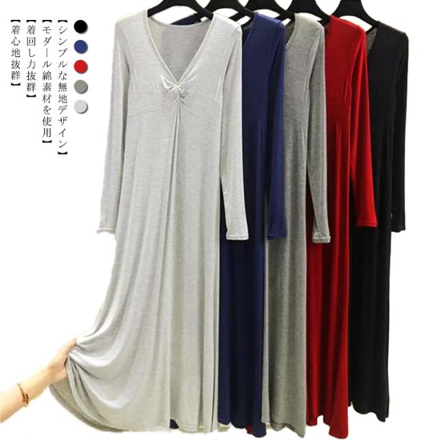 長袖 マキシ丈ワンピ レディース ワンピース 秋 Tシャツ 部屋着 モダール 無地 抜け感 細見え オーバーサイズ ビッグサイズ 大きいサイズ 大人カジュアル Vネック シンプル 送料無料 長め丈 ゆるワンピ マタニティ マキシワンピ 体型カバー ルームウェア 妊婦 ママ