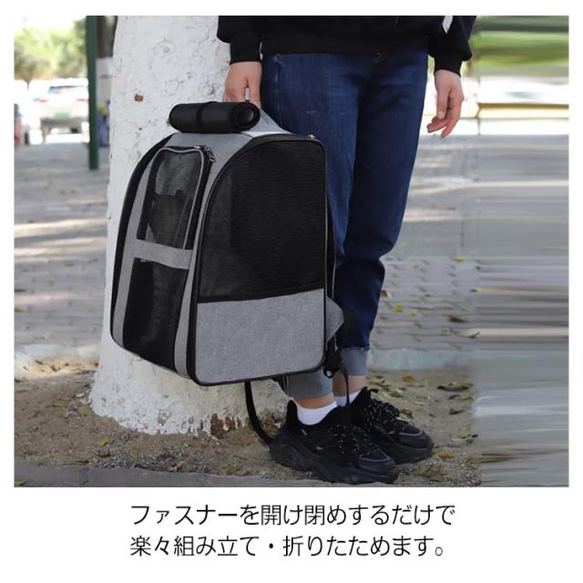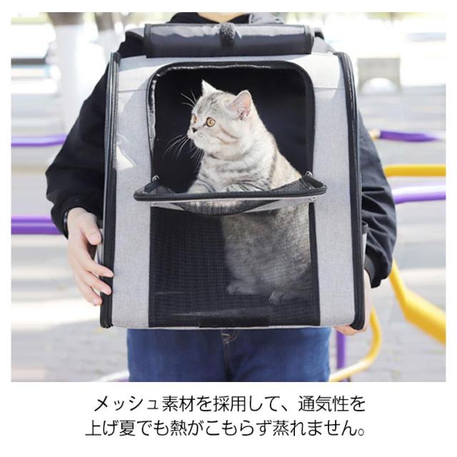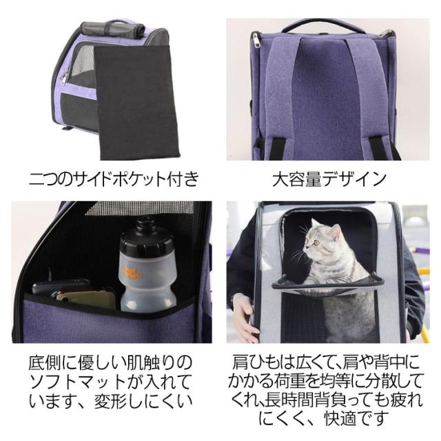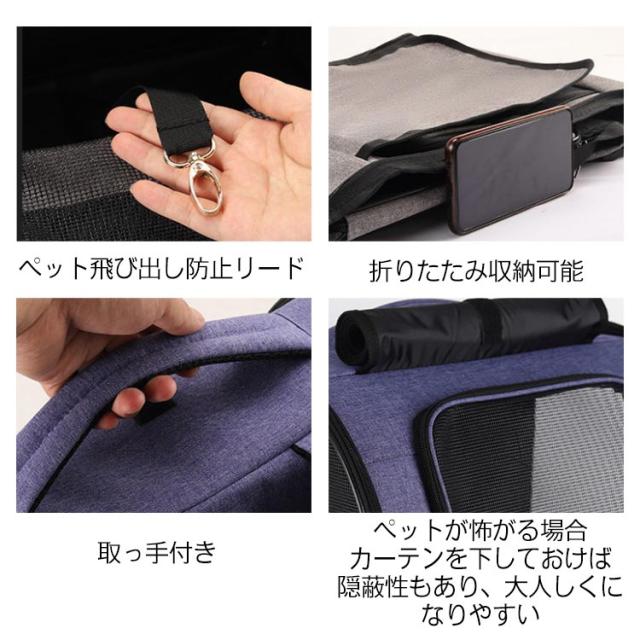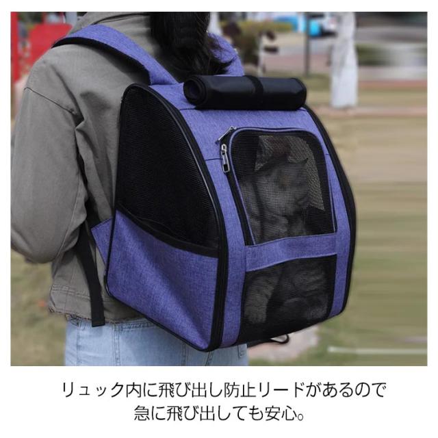 | ペットの通院、災害避難、電車移動、美容院通い、旅行など、色々な用途を想定して開発された猫、小型犬用のペットキャリーリュックです。 リュックタイプのペットキャリーバッグですので、両手がフリーになり非常に便利。 二つのサイドポケットにお出かけ用のペット用品を入れることができます。 リュック内に飛び出し防止リードがあるので、急に飛び出しても安心。 ぺットリュックは骨組み、底板もしっかりしており、付属の両面用マットも硬めに作られているので安定感あります。 メッシュ素材を採用して、通気性を上げ夏でも熱がこもらず蒸れません。 ファスナーを開け閉めするだけで楽々組み立て・折りたためます。 使わない時はたたんで収納できるのでスペースをとりません。 | |