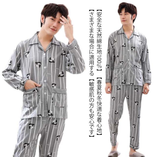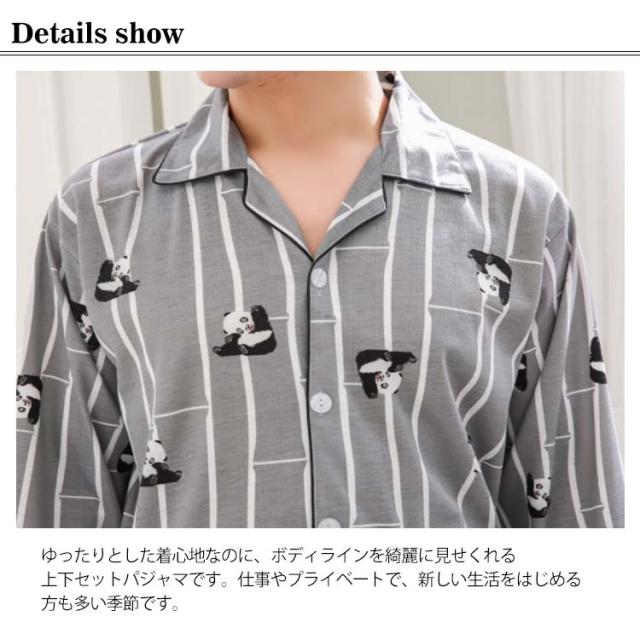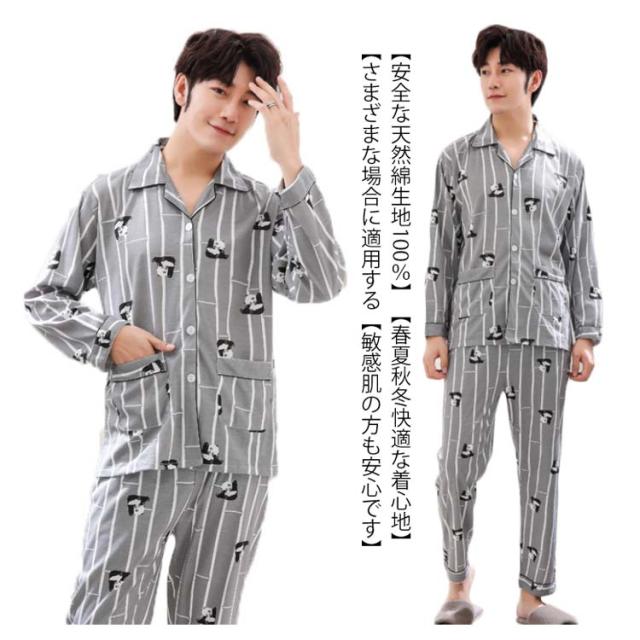 パジャマ メンズ 部屋着 前開き 上下 セット 寝巻き 男性 パンツ 長袖 ストライプ パンダ柄 セットアップ 大きいサイズ 旦那 記念日 お祝い ギフト プレゼント 父の日 敬老の日