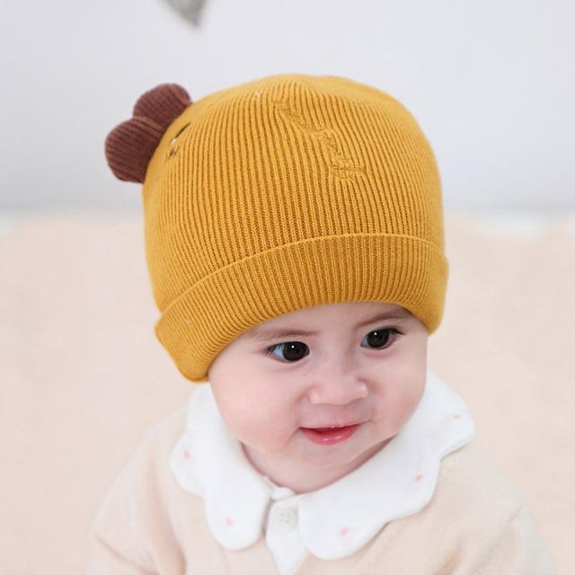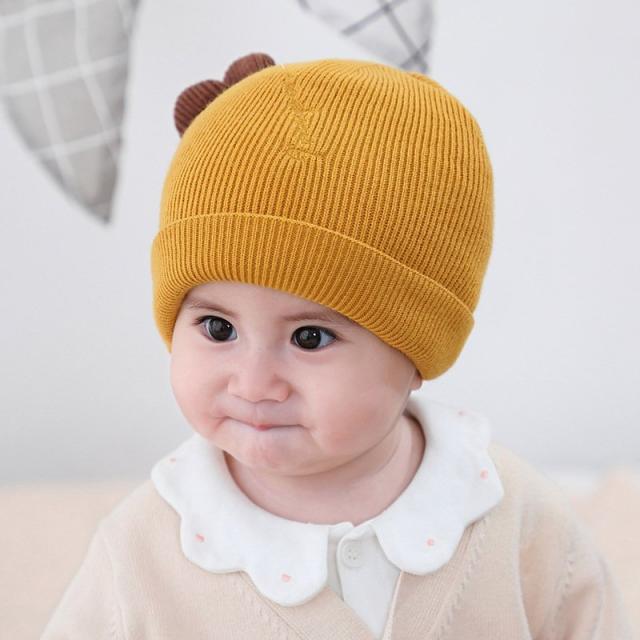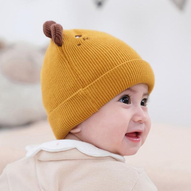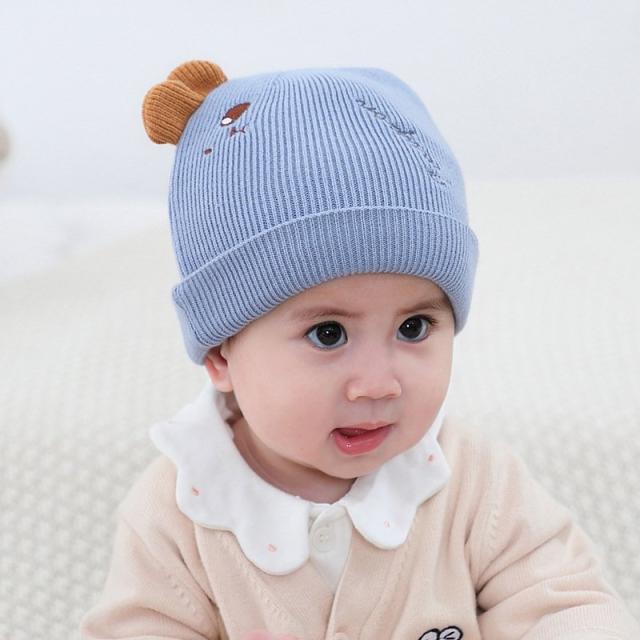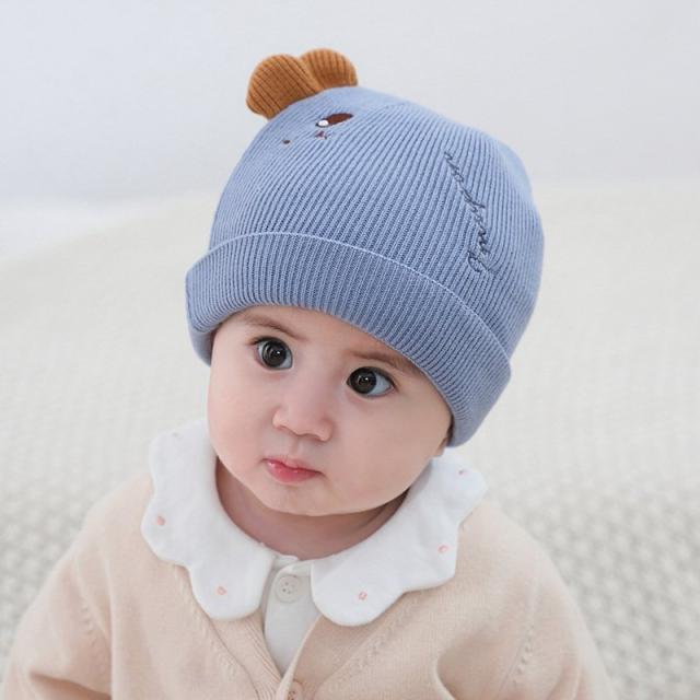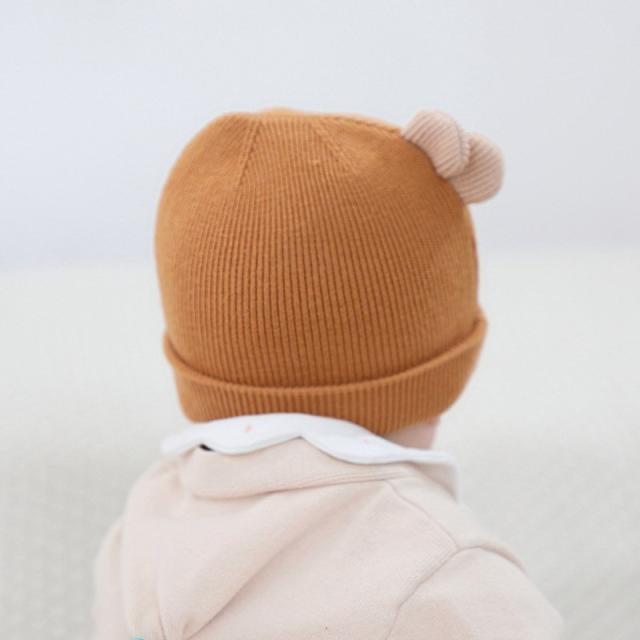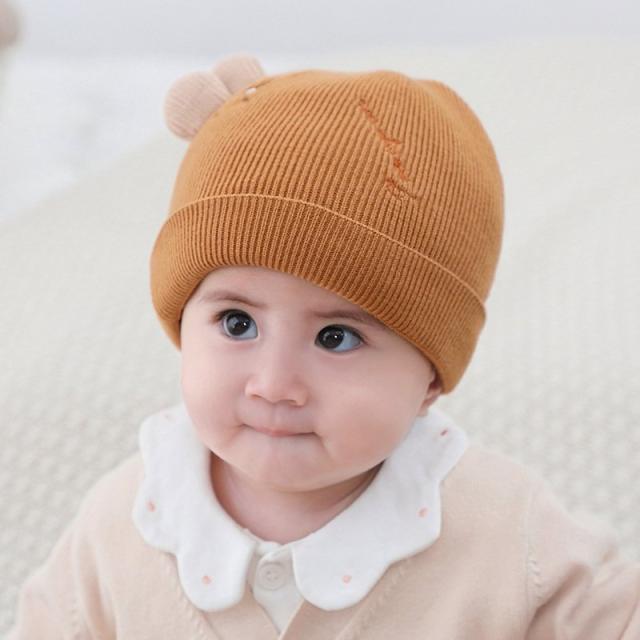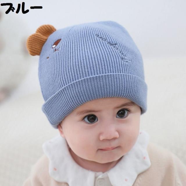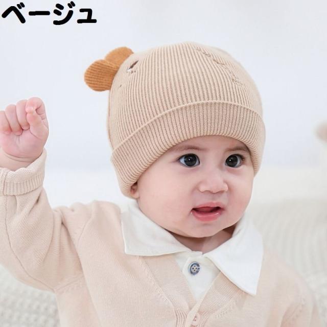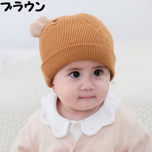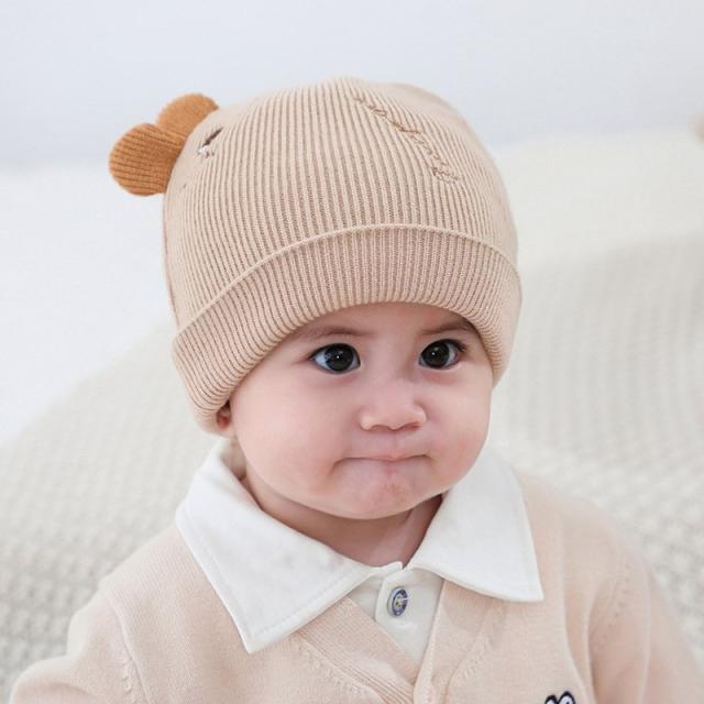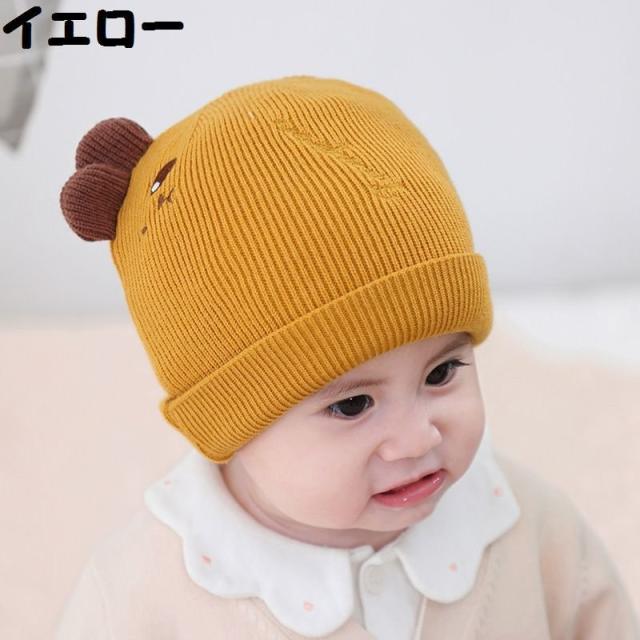 ベビー帽子 ニット帽 ワッチキャップ ビーニー ベビー 赤ちゃん 男の子 女の子 子供用 ぼうし 刺繍 アップリケ 耳付き 単色 バイカラー ピンク