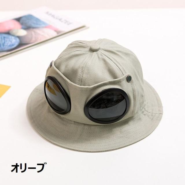 帽子 サファリハット 子供用 キッズ 男の子 女の子 バケットハット 飛行士 パイロット ゴーグル 宇宙人 あご紐付き 日よけ 紫外線対策 熱中症対策