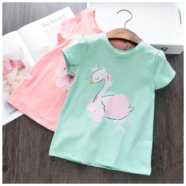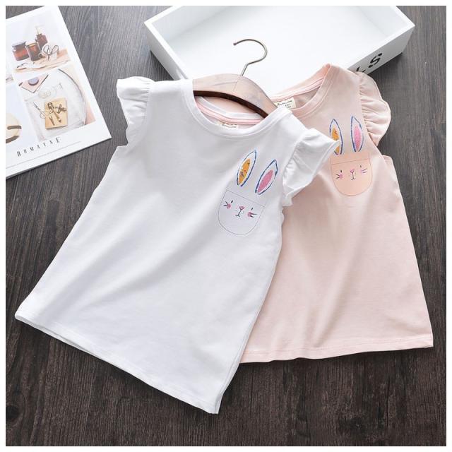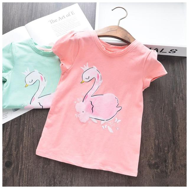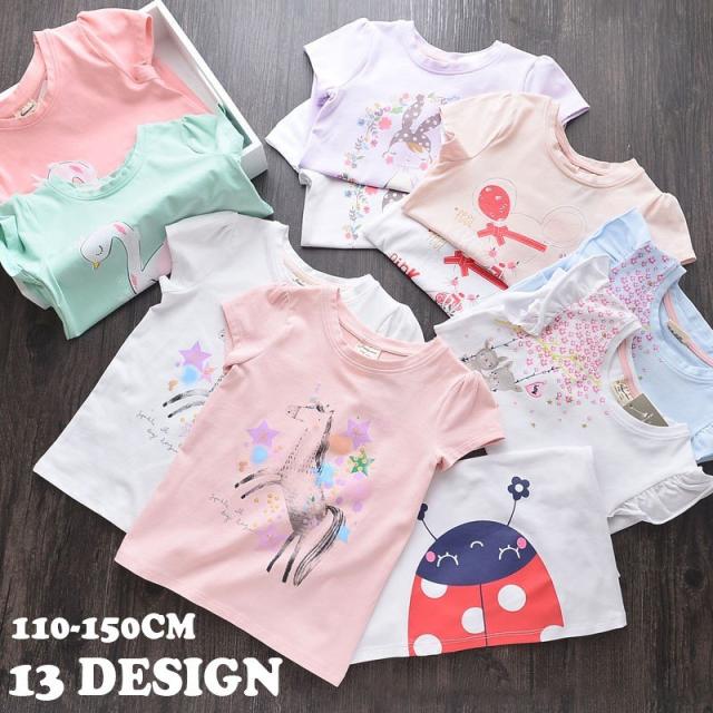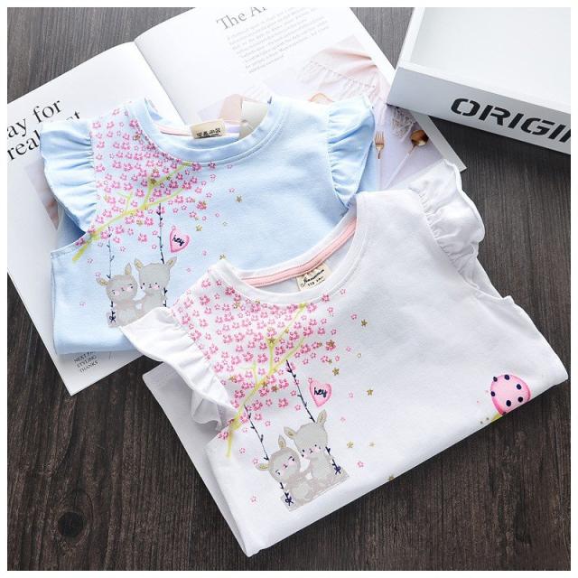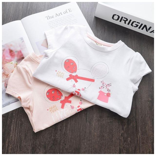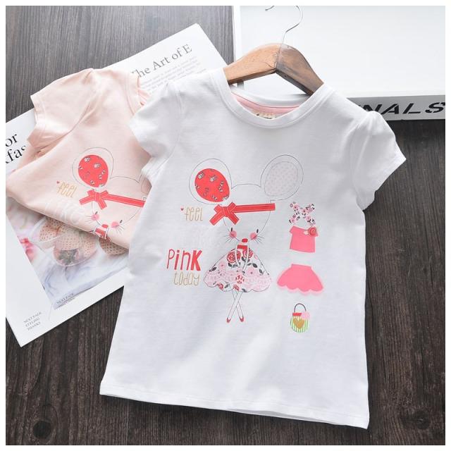 Tシャツ 半袖 キッズ服 子供服 キッズウェア 丸首 フレンチスリーブ ウサギ ラビット ネズミ スワン 白鳥 風船 花 イラスト バルーン ピンク