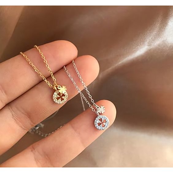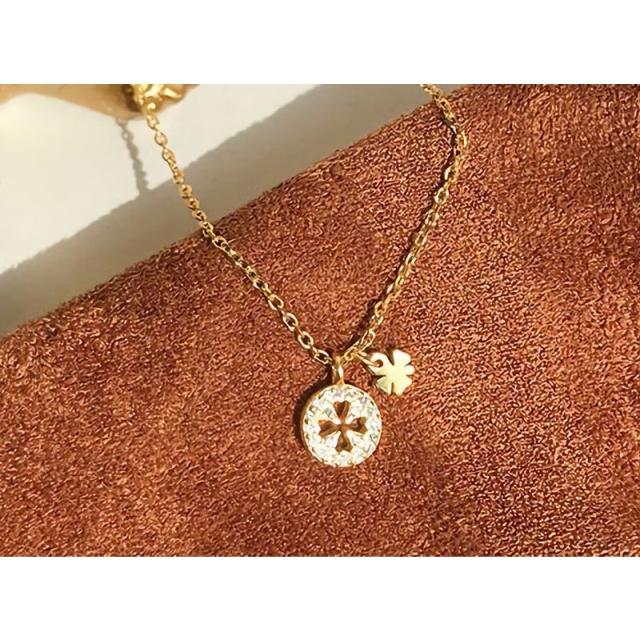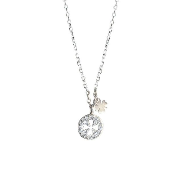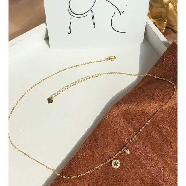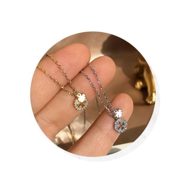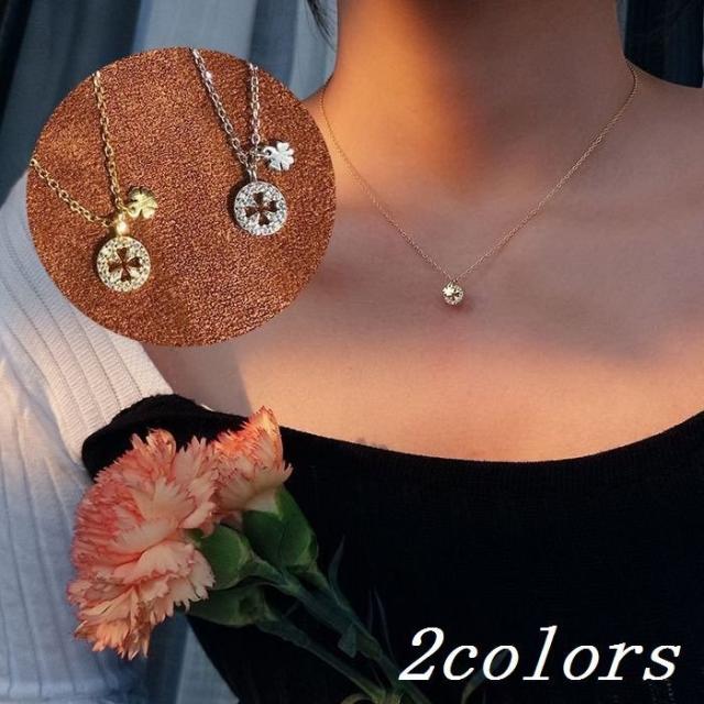 ネックレス ペンダント レディース アクセサリー ジュエリー チェーン 四つ葉のクローバー ラインストーン ラウンド 円型 細見 華奢 ゴールドカラー