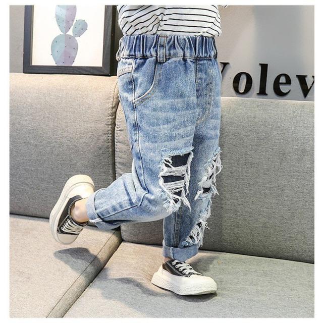 デニムパンツ ジーンズ 長ズボン キッズ 子供服 女の子 ボトムス 長丈 ロングパンツ ウエストゴム ダメージジーンズ かわいい おしゃれ お出かけ