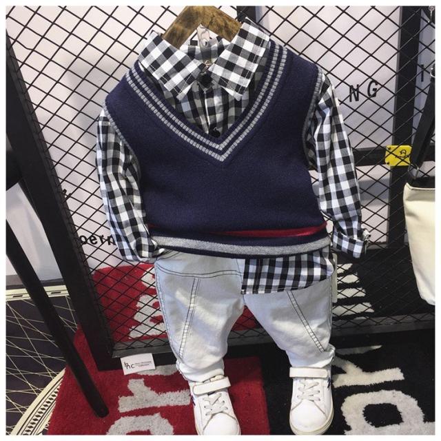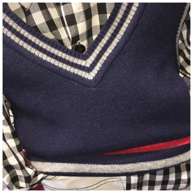 ニットベスト チョッキ ギンガムチェック Vネック シャツ 長袖 チェック柄 長ズボン ボトムス ロングパンツ ウエストリブ パンツ 子供服 子ども