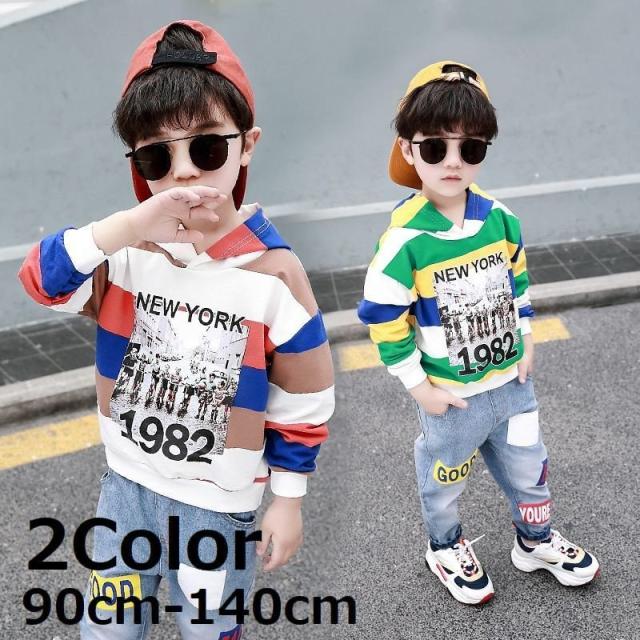 パーカー プルオーバー キッズ 子供服 ボーダー 長袖 おしゃれ かっこいい かわいい 男の子 女の子 ボーイ ガール カジュアル