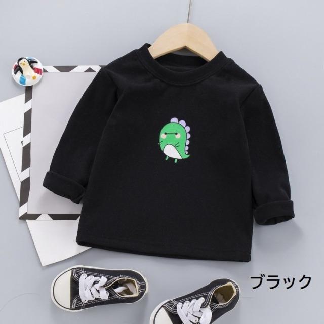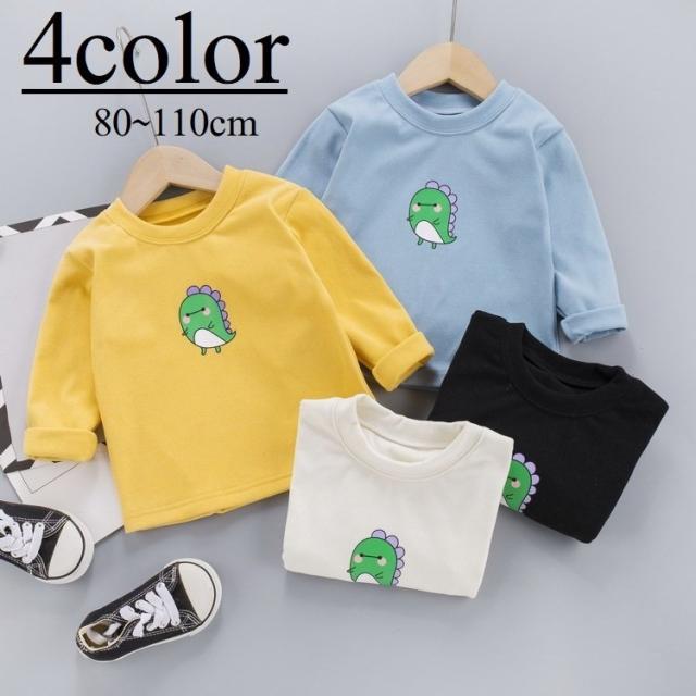 トレーナー ロングTシャツ 子供 キッズ 男の子 女の子 ベビー トップス 長袖 ラウンドネック 恐竜 イラスト入り プリント入り 無地 シンプル か