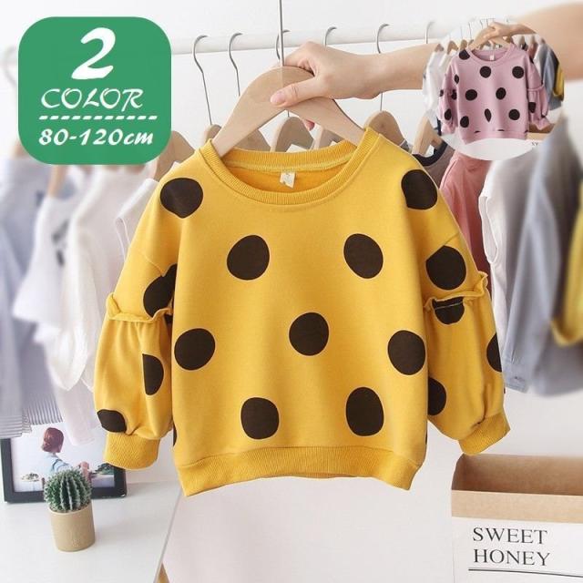 トレーナー キッズ 子供服 ベビー トップス 長袖 ラウンドネック リブ ドット 水玉 カジュアル ラフ おしゃれ かわいい