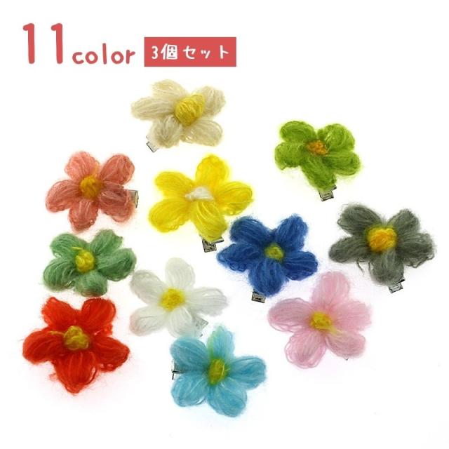 ヘアクリップ 3個セット 髪留め 髪飾り ヘアアクセサリー レディース 女性 婦人 ファッション小物 毛糸 花 かわいい おしゃれ