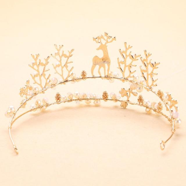 ティアラ 髪飾り ヘアアクセサリー レディース ヘッドドレス フェイクパール ビーズ ラインストーン 鹿 シカ キラキラ ゴージャス おしゃれ かわい