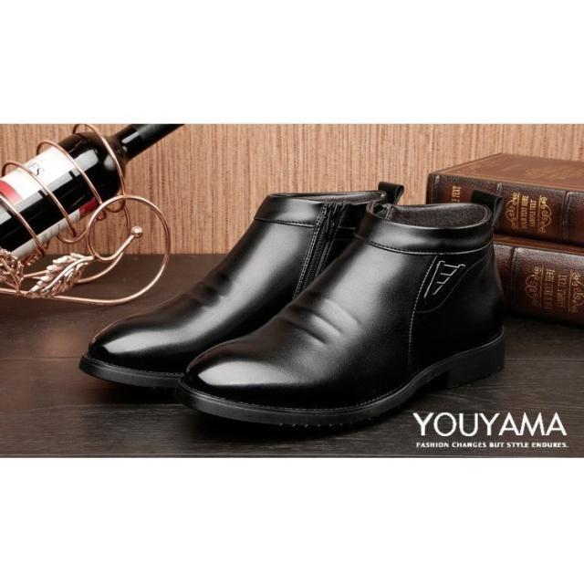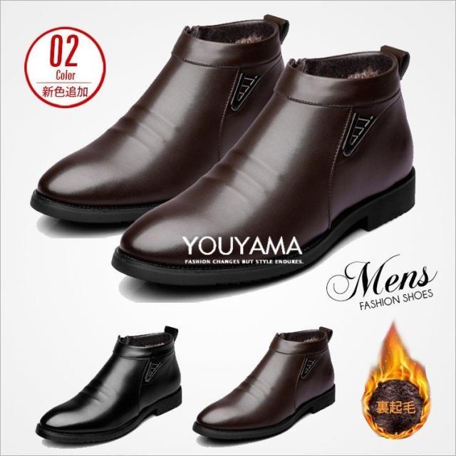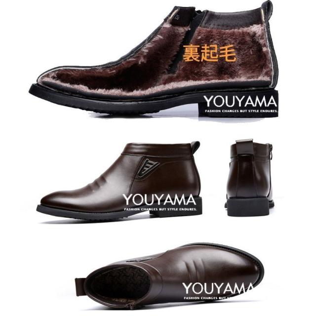 綿入れ 靴 革靴 メンズ ムートンブーツ ショートブーツ 起毛加工 紳士靴 メンズ カジュアルシューズ 冬 新作 防滑 保温 サイドファスナー