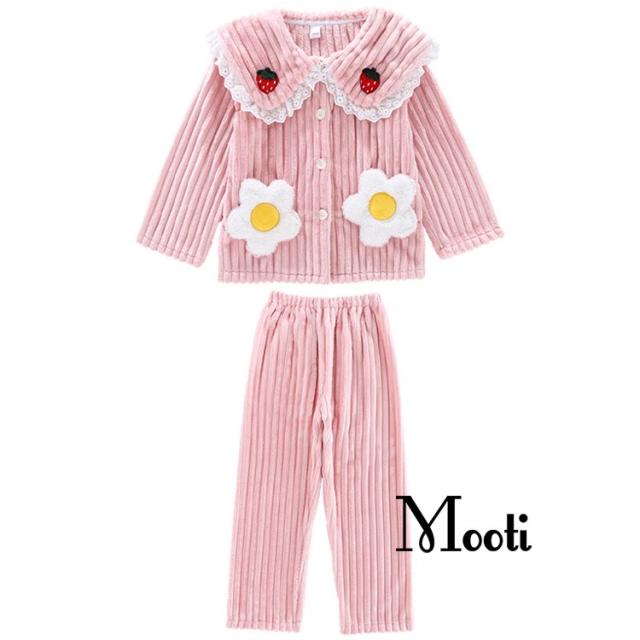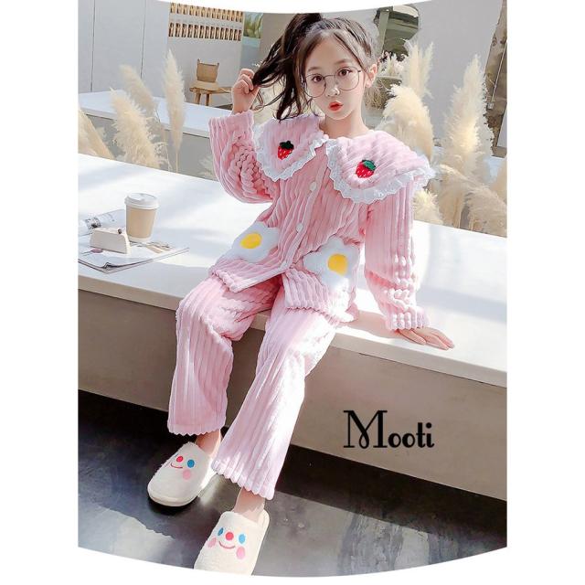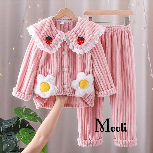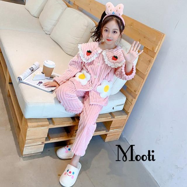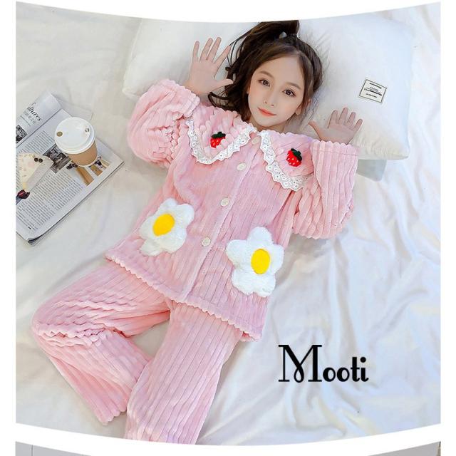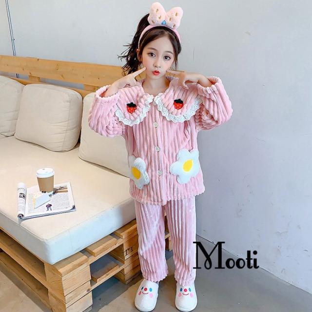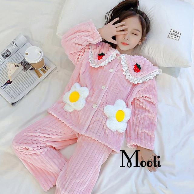 パジャマ キッズ 子供服 女の子 冬 ルームウェア 厚手 パジャマ モコモコ 可愛い 長袖 フランネル セットアップ 部屋着 柔らかい 防寒着 秋冬