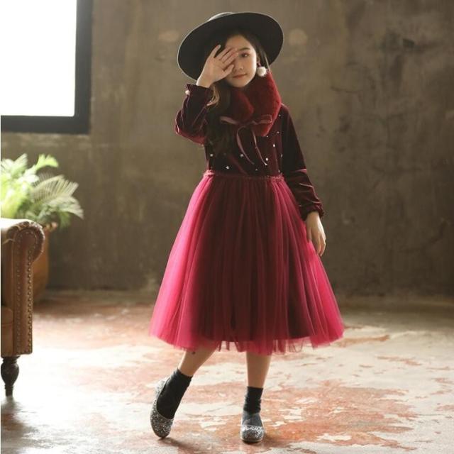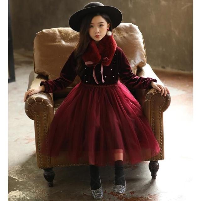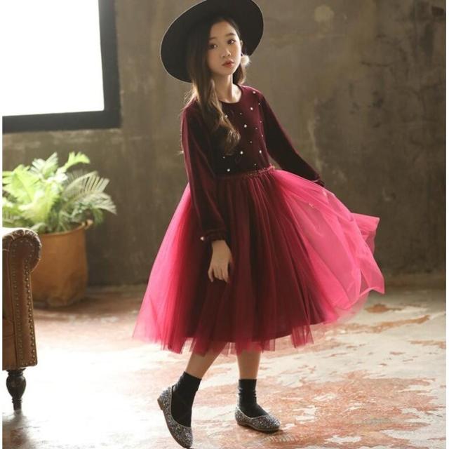 新品限定セール子供ドレス フォーマル発表会ドレス キッズ子どもワンピース 長袖ワンピ 裏起毛/薄手ピアノ 発表会 韓国子供服 卒園式 結婚式 100-170