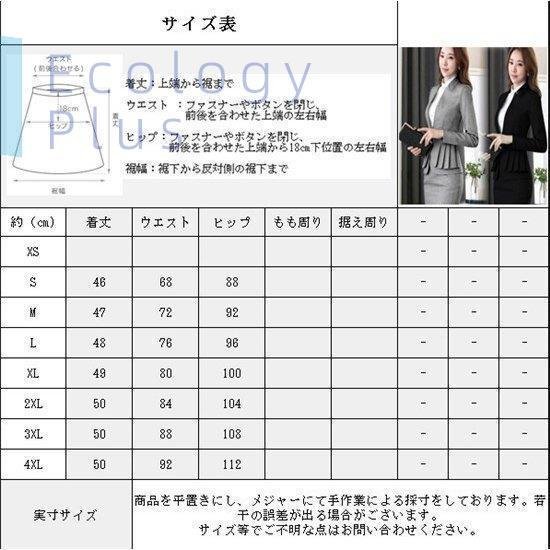 | 色 | ブラック(スカートスーツ) ブラック(パンツスーツ) グレー(スカートスーツ) グレー(パンツスーツ) |