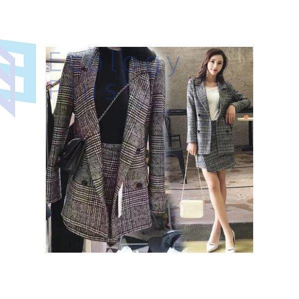 スカートスーツ セットアップ レディース ロングジャケット チェック柄 上下セット 大人 カジュアル 着やせ オシャレ 通勤 通学 上品 秋 冬 新作