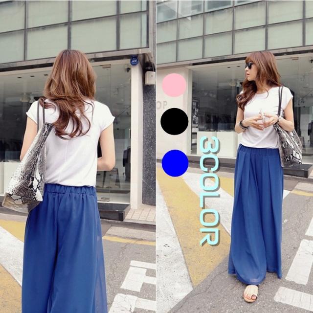 ガウチョパンツ レデイース ワイドパンツ ズボン プリーツ ガウチョ スカーチョ フレア シフォン ゆったり ロング丈 ロングパンツ 春
