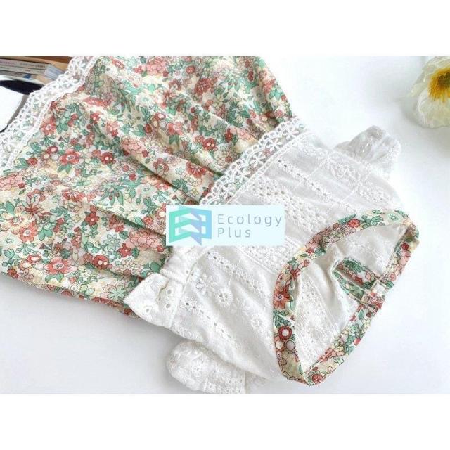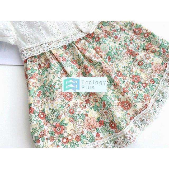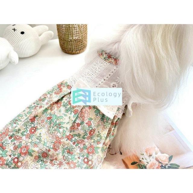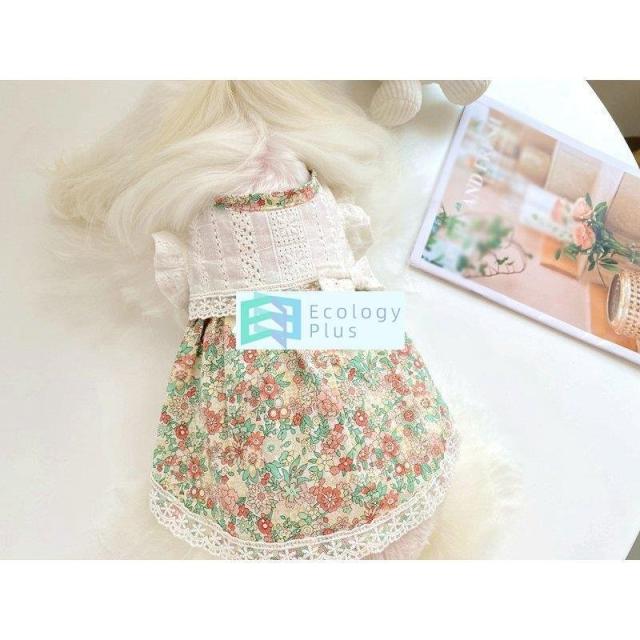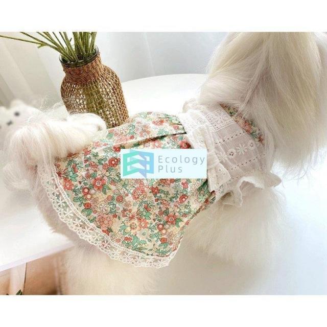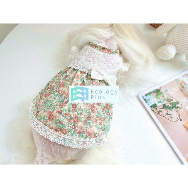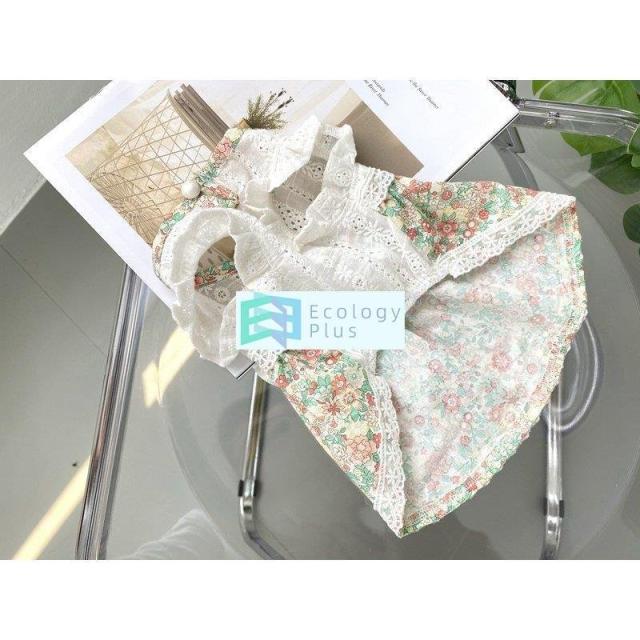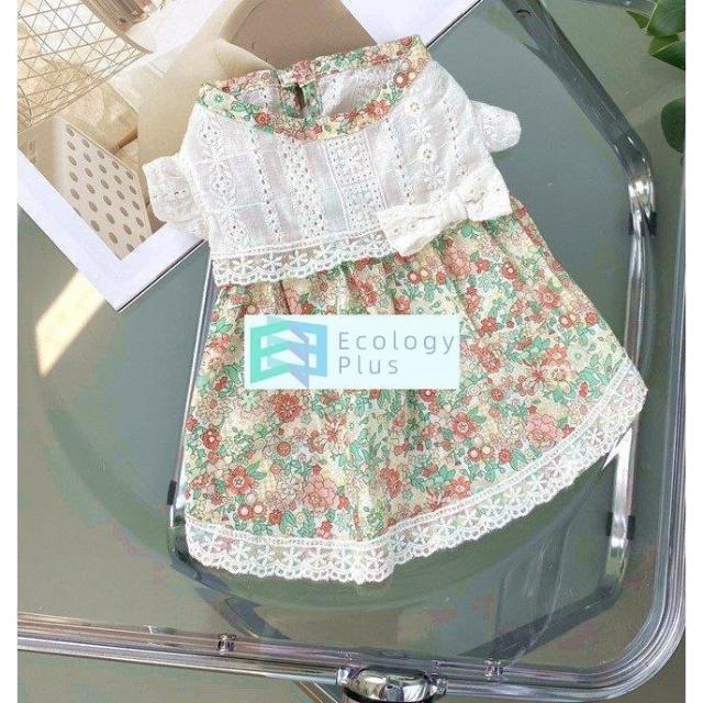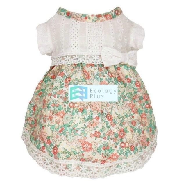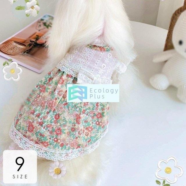 ペット用品 ペットグッズ ペットウエア コスチューム ワンピース レース リボン 小花 袖有り ホワイト レッド グリーンピクニック 清潔 お出かけ 安心