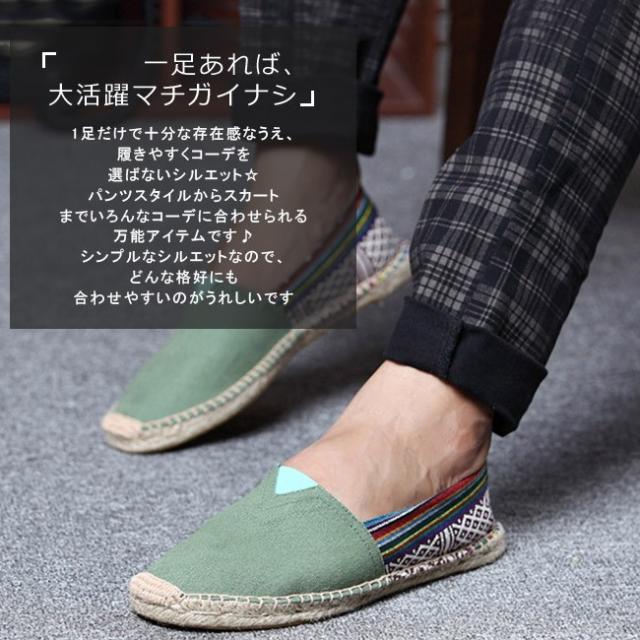 スリッポン エスパドリーユ 男女兼用 カップル 軽量 シューズ スリッパ フラット 大きいサイズ 履きやすい おしゃれ フラットシューズ