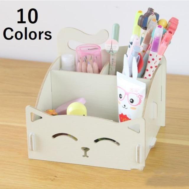 ペンホルダー ペン立て 収納ボックス 小物入れ 木製 雑貨 ジュエリーボックス 子猫 かわいい お洒落 子供部屋 小学生