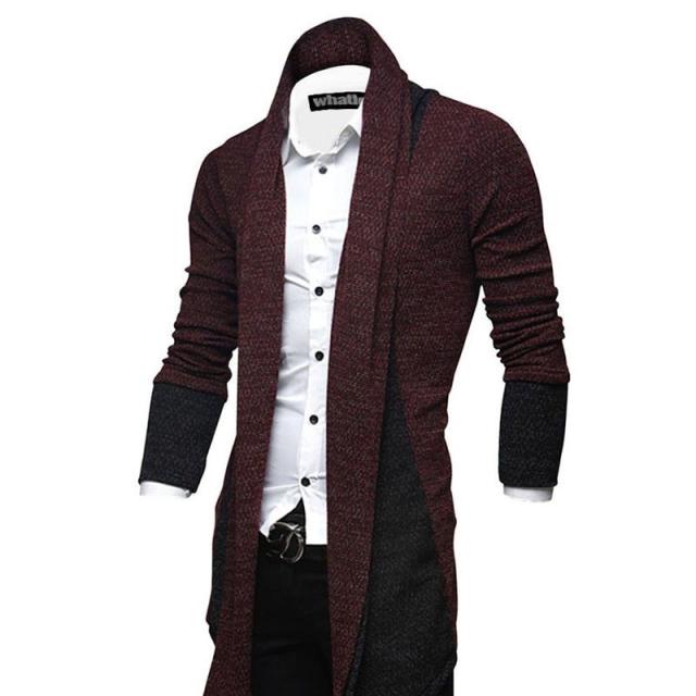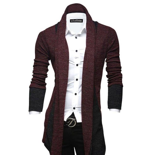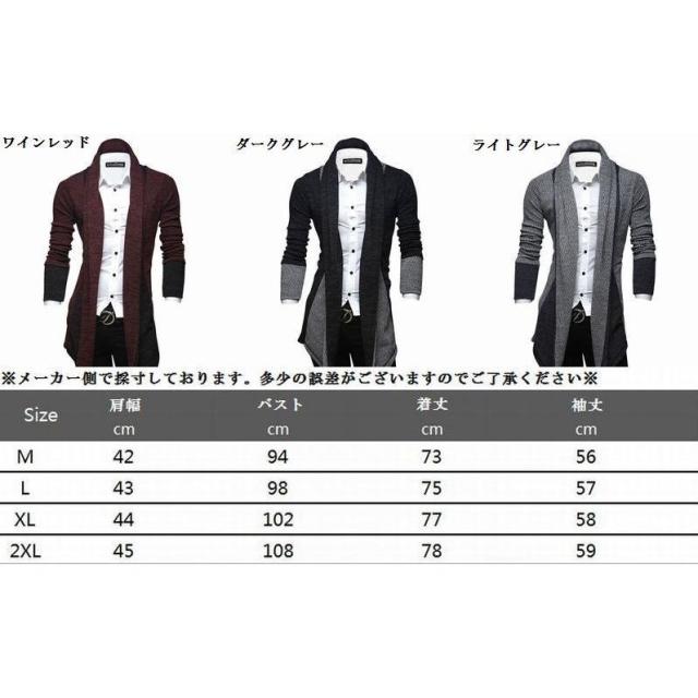 カーディガン メンズ ロング ロングカーディガン ガウン ジャケット バイカラー タイト 配色 アウター トップス カジュアル