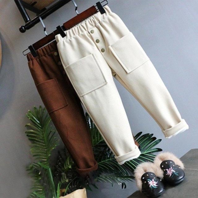 パンツ ズボン 子供用 女の子 ボトムス ロング 長ズボン 無地 シンプル 裏起毛 ウエストゴム 楽ちん カジュアル あったか 防寒 秋冬
