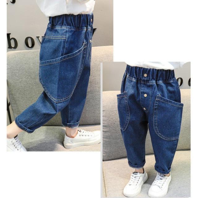 デニムパンツ 長ズボン キッズ 子供服 男の子 女の子 ハーレムパンツ 長丈 ロングパンツ ウエストゴム カジュアル かわいい お出かけ 動きやすい