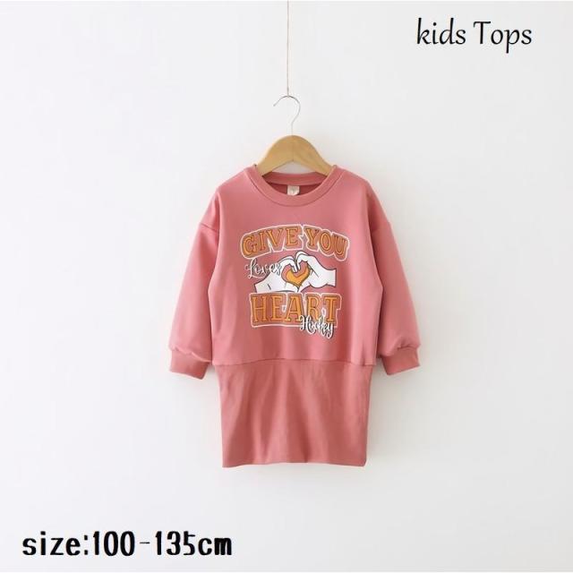 トレーナー チュニック ワンピース 長袖 子供服 キッズ 女の子 プルオーバー ロング丈 裾リブ 丸首 トップス 英字ロゴ プリント ラウンドネック