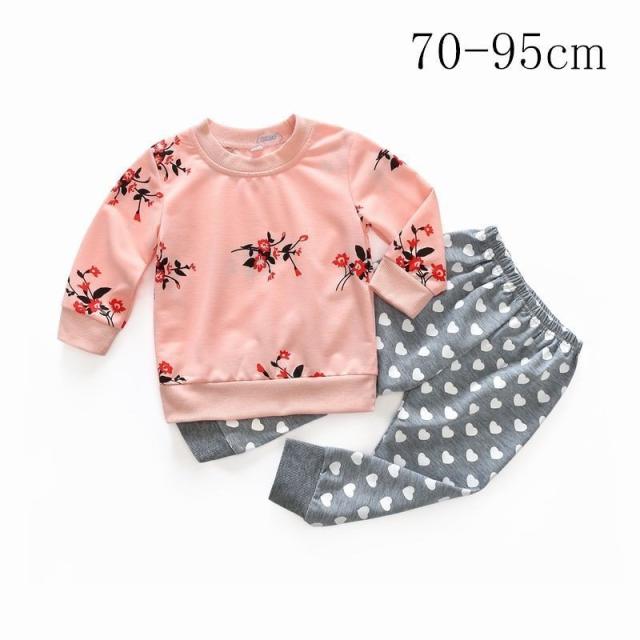セットアップ 上下セット 2点セット カットソー 長ズボン ベビー 女の子 男の子 ベビー服 長袖 リブ編み ハート 花 可愛い