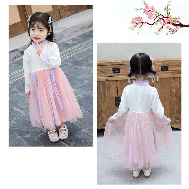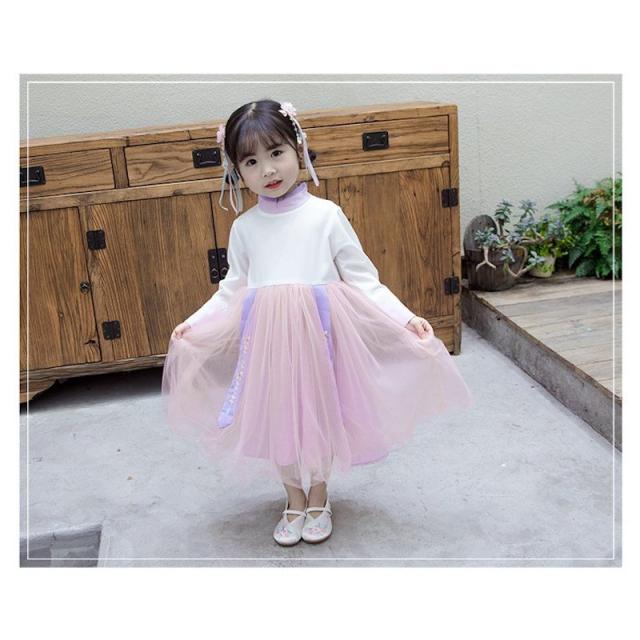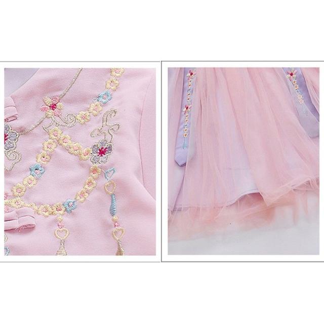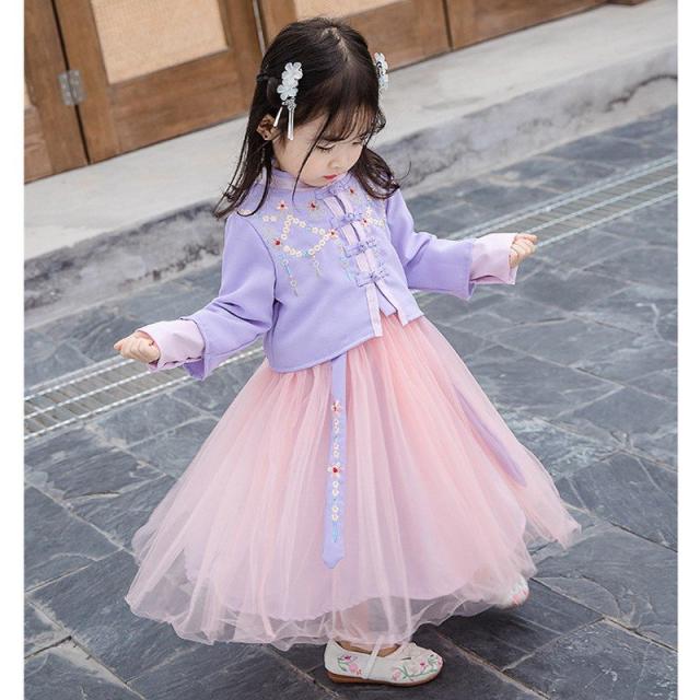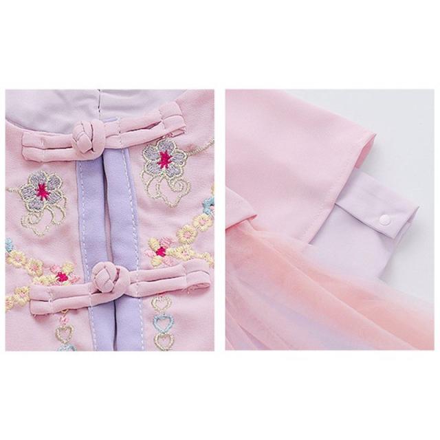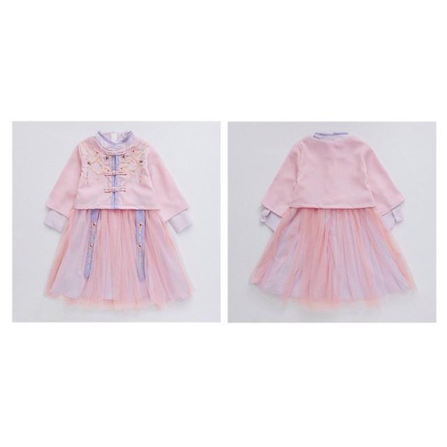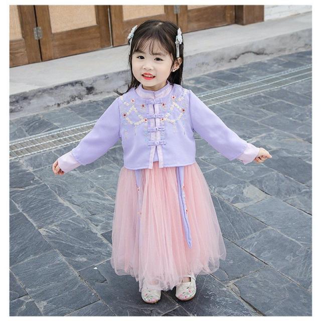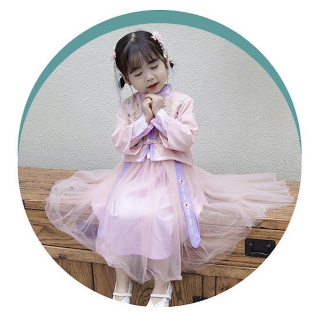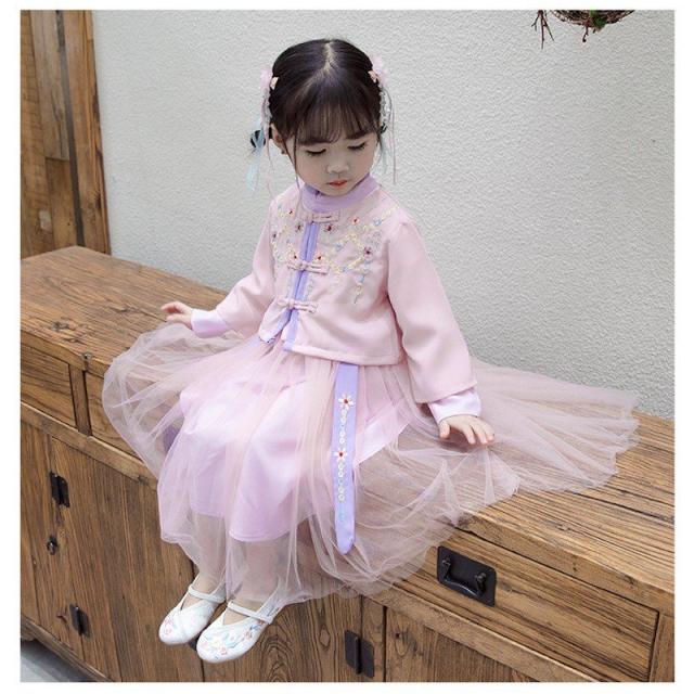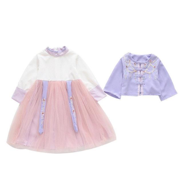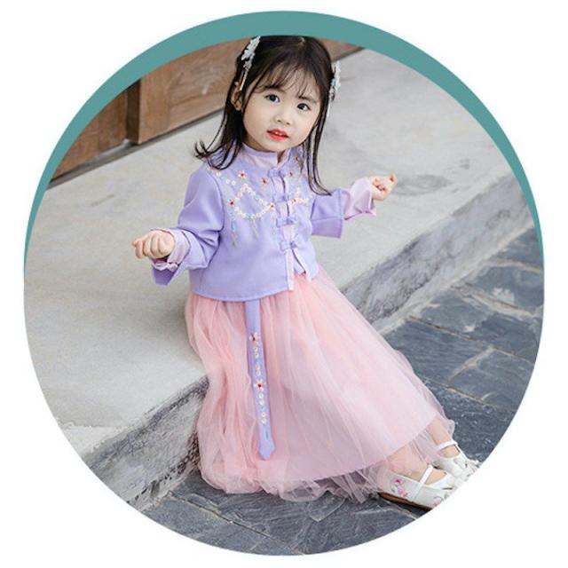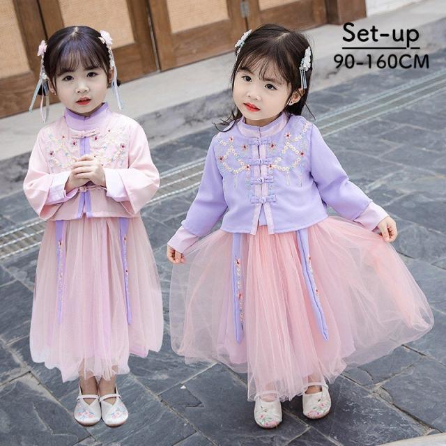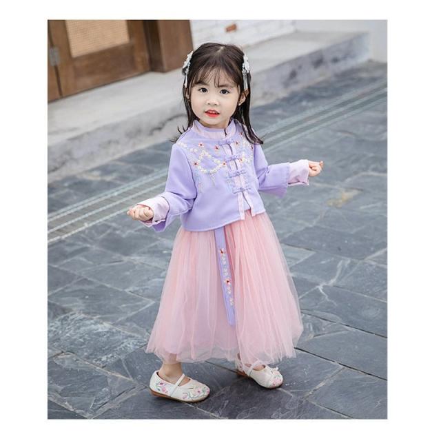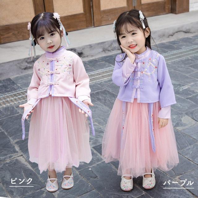 セットアップ 上下セット 長袖アウター ワンピース キッズ 子供服 女の子 春服 花柄 刺繍 中国風 民族衣装風 チャイナ風 シフォン チュール かわ